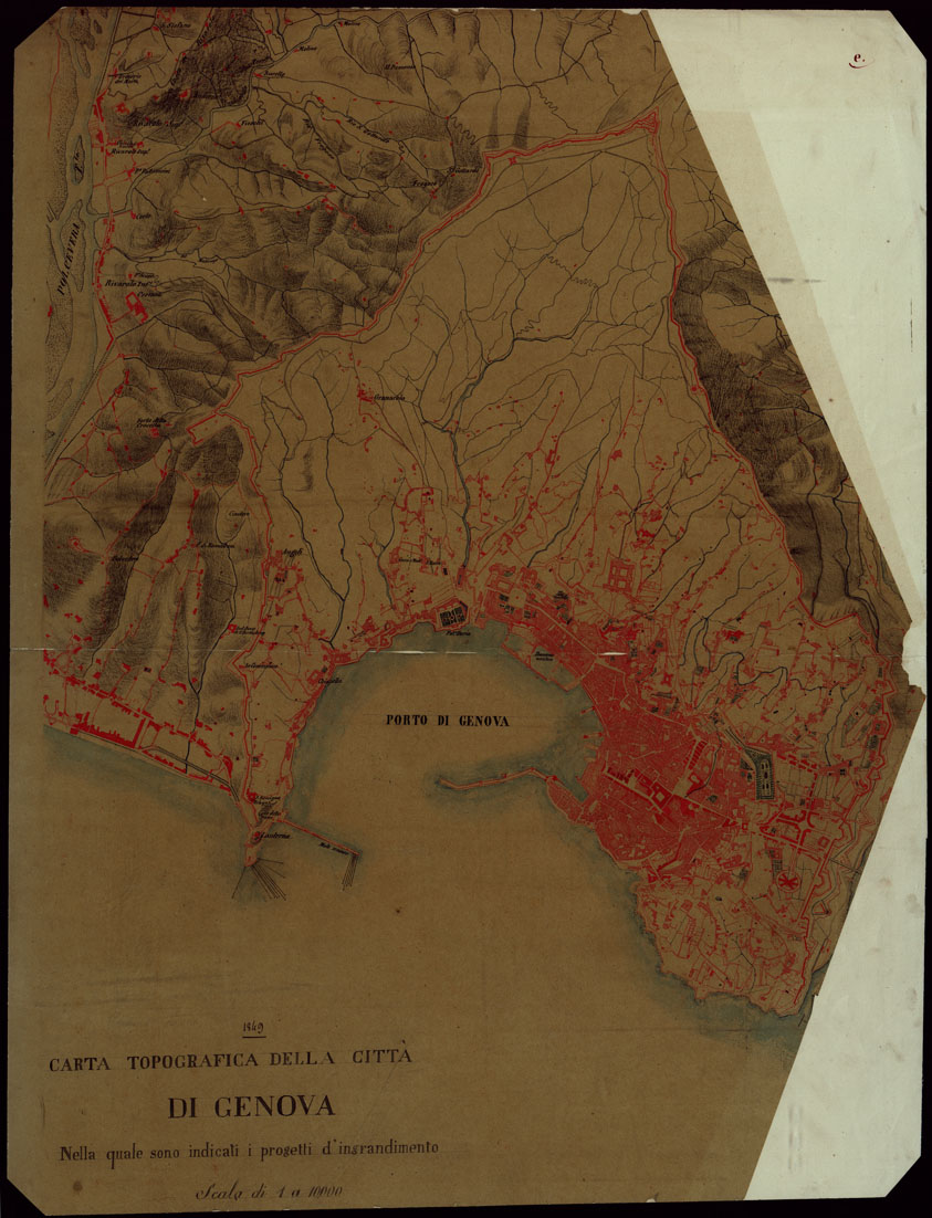 CARTA TOPOGRAFICA DELLA CITTA' DI GENOVA NELLA QUALE SONO INDICATI I PROGETTI D'INGRANDIMENTO SCALA DI 1 A 10.000