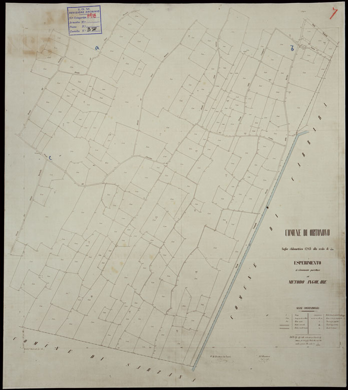 COMUNE DI ORTONOVO FOGLIO CHILOMETRICO 12-15 ALLA SCALA DI 1:2.500 ESPERIMENTO DI RILEVAMENTO PARCELLARE COL METODO ANGOLARE.