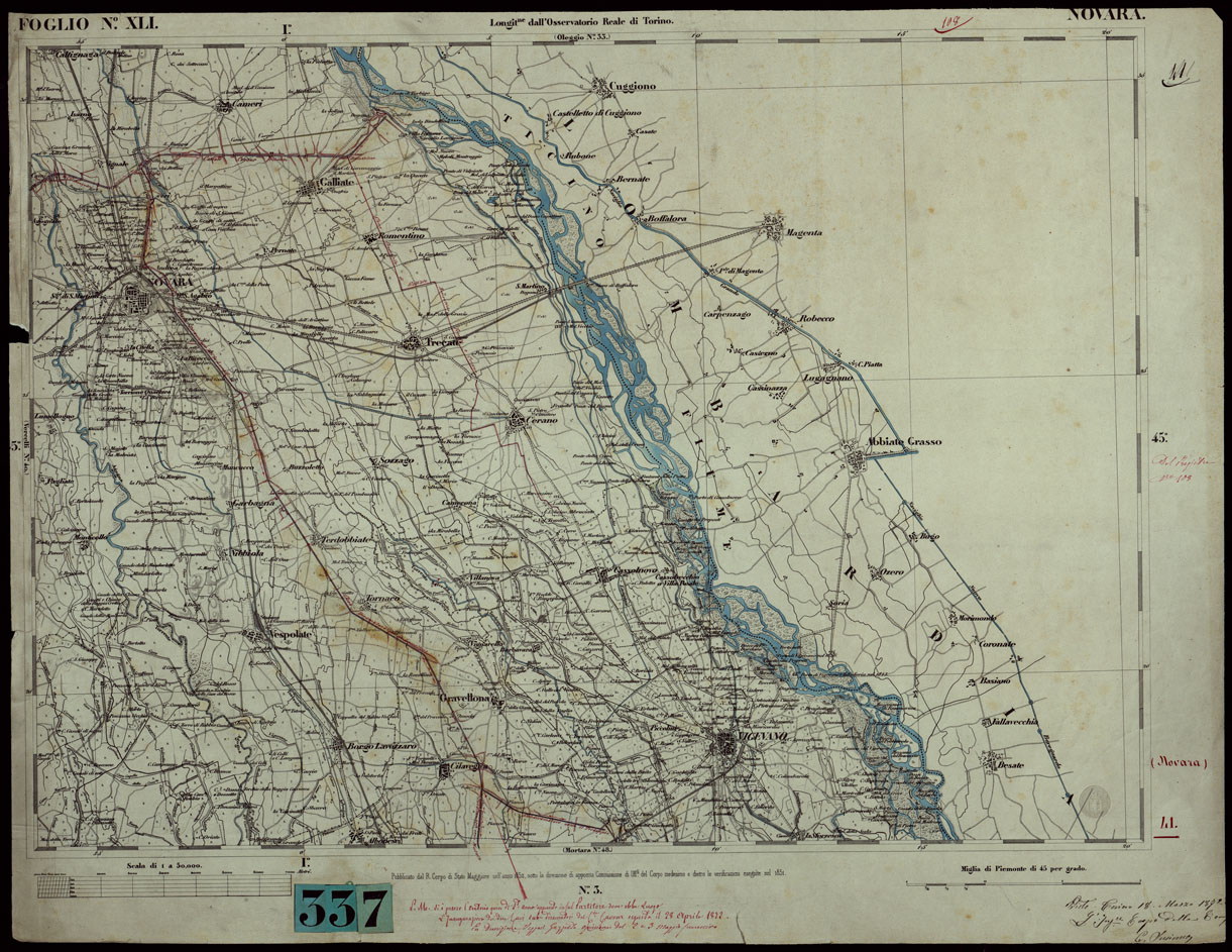 COMPAGNIA GENERALE DEI CANALI D'IRRIGAZIONE ITALIANI (CANALE CAVOUR) PROGETTO DI DIRAMAZIONE DELLE ACQUE DEL CANALE CAVOUR A BENEFICIO DELLA REGIONE COMPRESA FRA L'AGOGNA ED ILTICINO - FOGLIO XLI NOVARA.