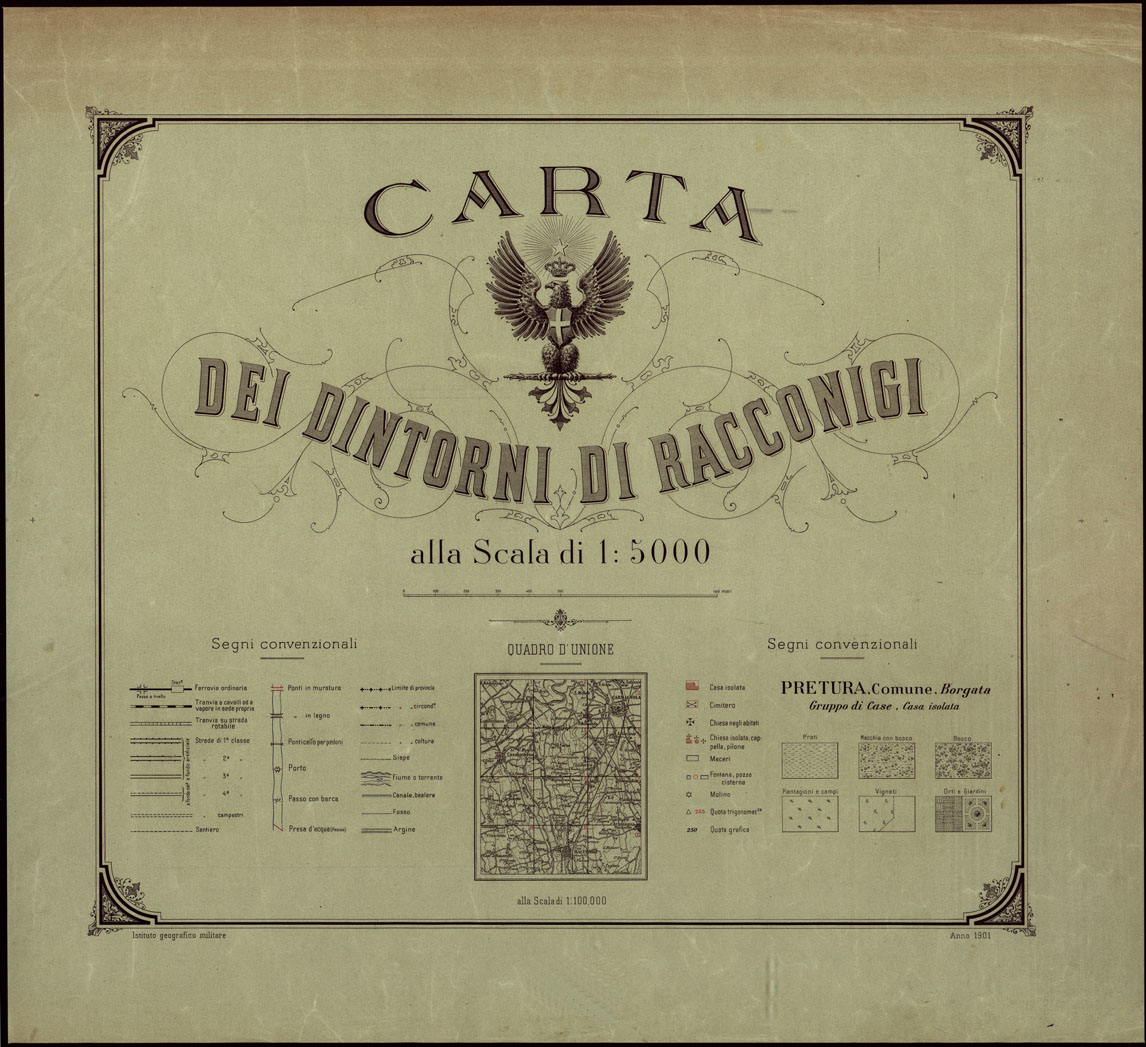 I rilevamenti topografici per la realizzazione della “Carta d´Italia&lrquo” iniziarono nel 1878: si trattava di un´opera così importante e lodevole che meritò la consapevole attenzione, non solo degli addetti ai lavori e delle categorie professionali coinvolte, ma anche delle più alte autorità del Regno.