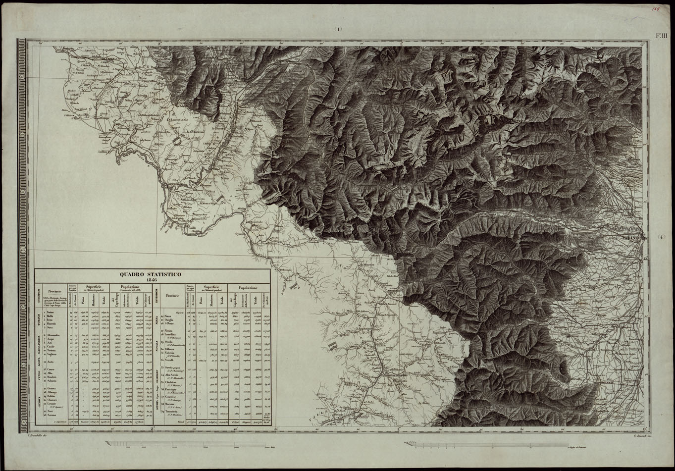 CARTA DEGLI STATI DI SUA MAESTA' SARDA IN TERRAFERMA OPERA DEL REAL CORPO DI STATO MAGGIORE GENERALE INCISA E PUBBLICATA - FOGLIO III.
