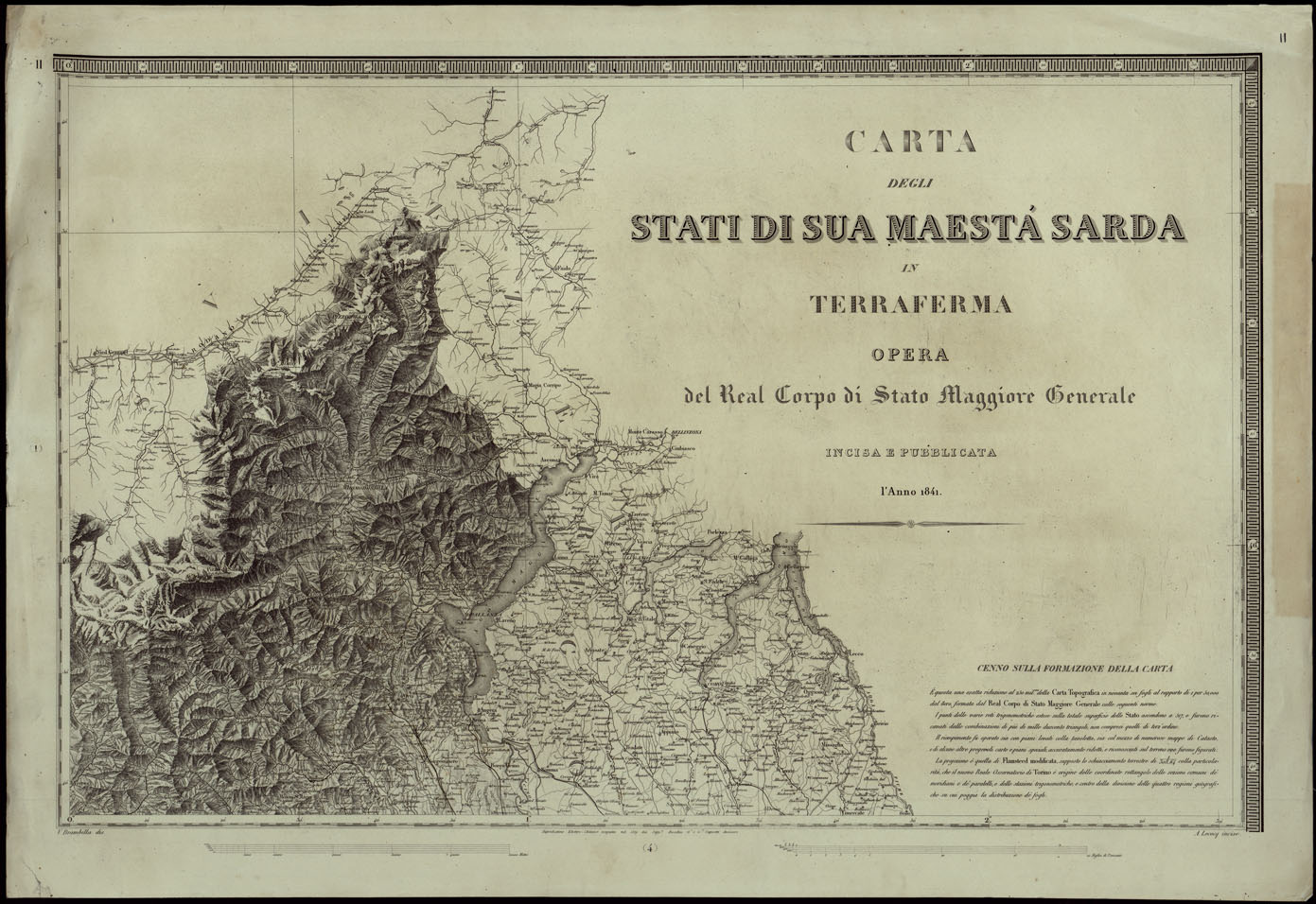 CARTA DEGLI STATI DI SUA MAESTA' SARDA IN TERRAFERMA OPERA DEL REAL CORPO DI STATO MAGGIORE GENERALE INCISA E PUBBLICATA - FOGLIO II TITOLO.