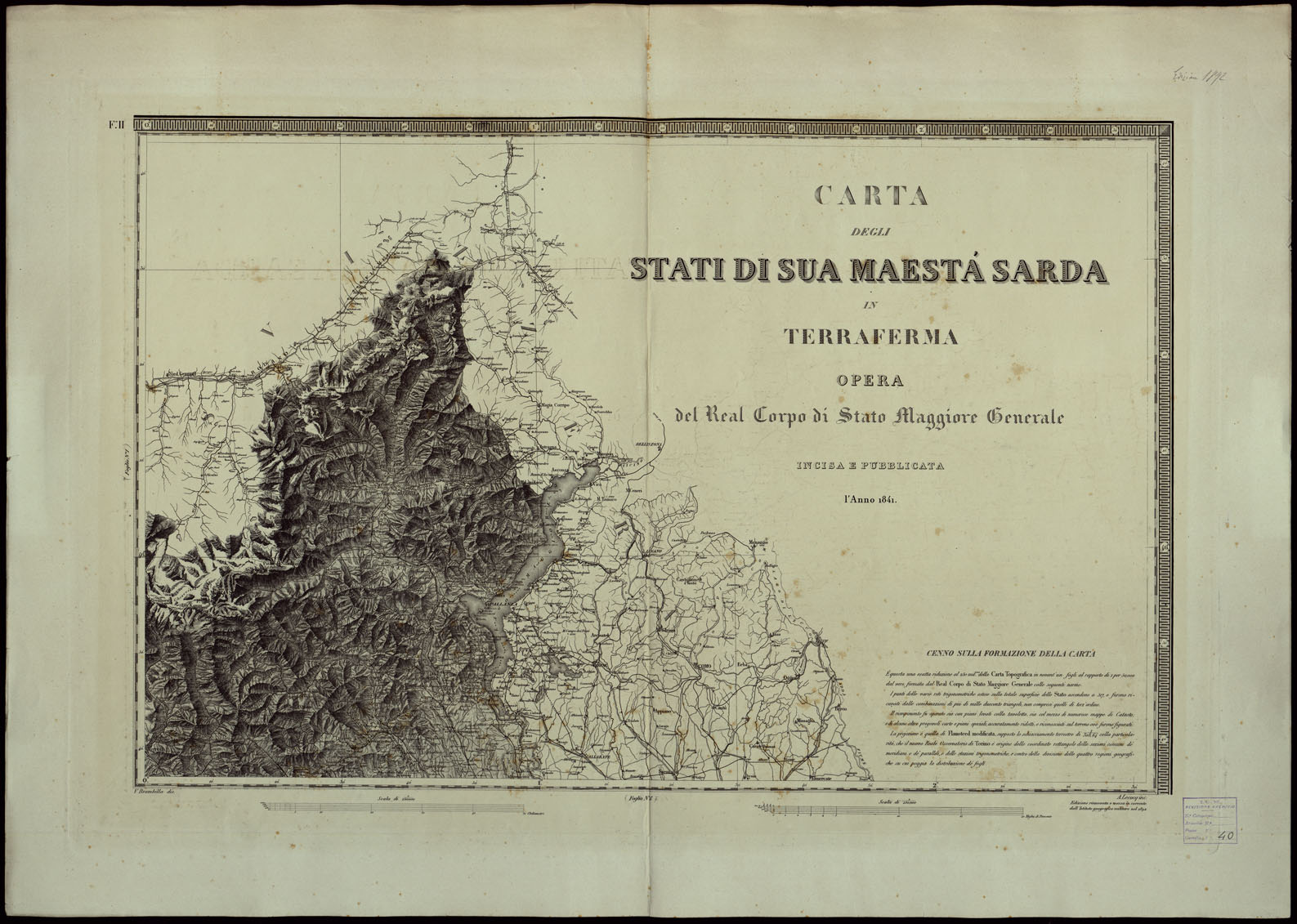 CARTA DEGLI STATI DI SUA MAESTA' SARDA IN TERRAFERMA OPERA DEL REAL CORPO DI STATO MAGGIORE GENERALE INCISA E PUBBLICATA - FOGLIO II TITOLO.