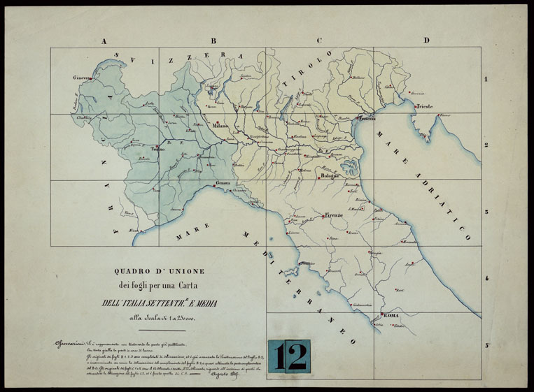 L´Italia, a causa delle particolari vicende storiche, solo dopo il 1870 formulò un progetto cartografico unitario.