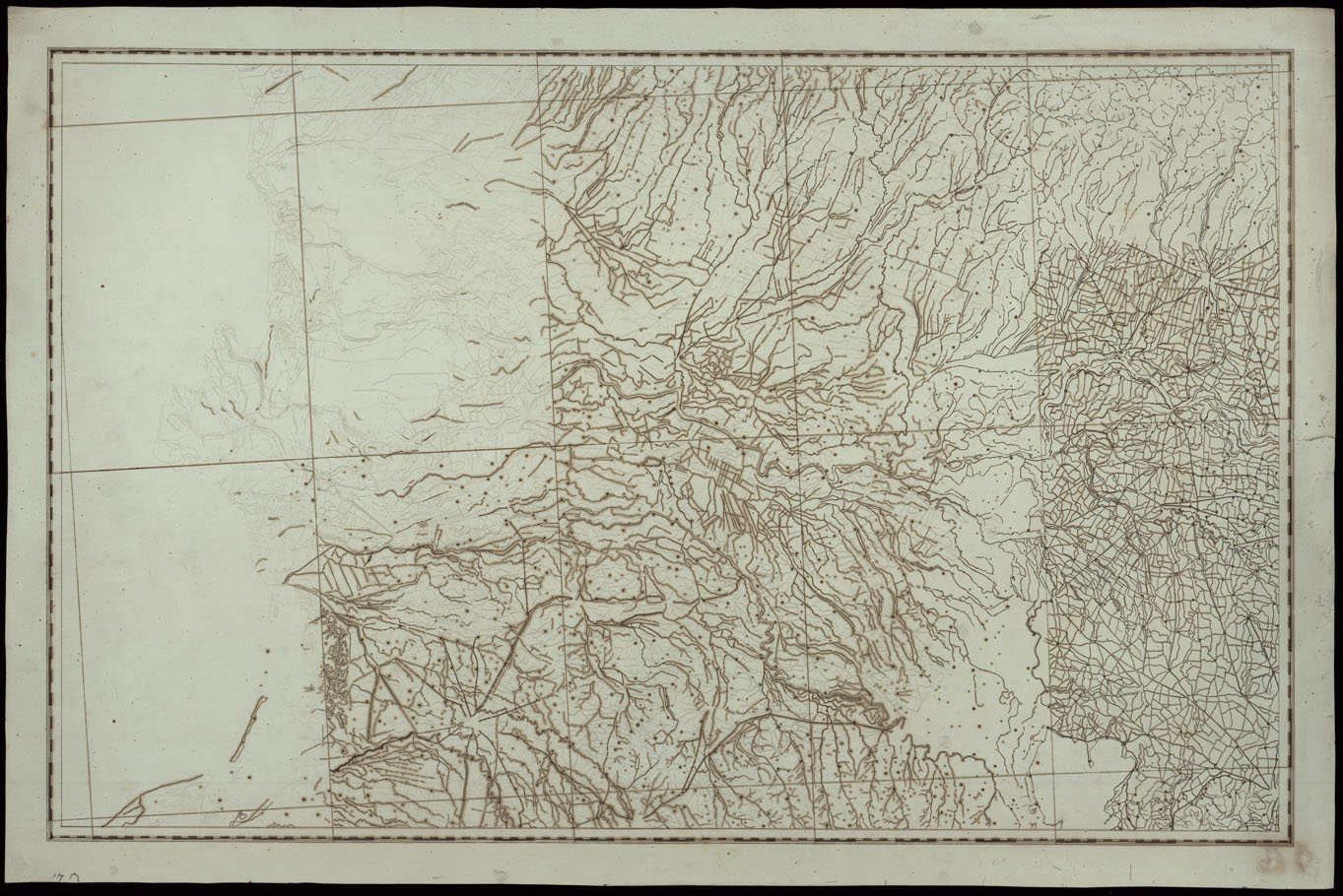CONTINUAZIONE AD ORIENTE DELLA CARTA DEGLI EX-STATI SARDI AL 250.000 FOGLI B 1 E 2 C 1 e 2 INCISA LA SEMPLICE DELINEAZIONE E POCA SCRITTURA - FOGLIO II SOLO PLANIMETRIA.