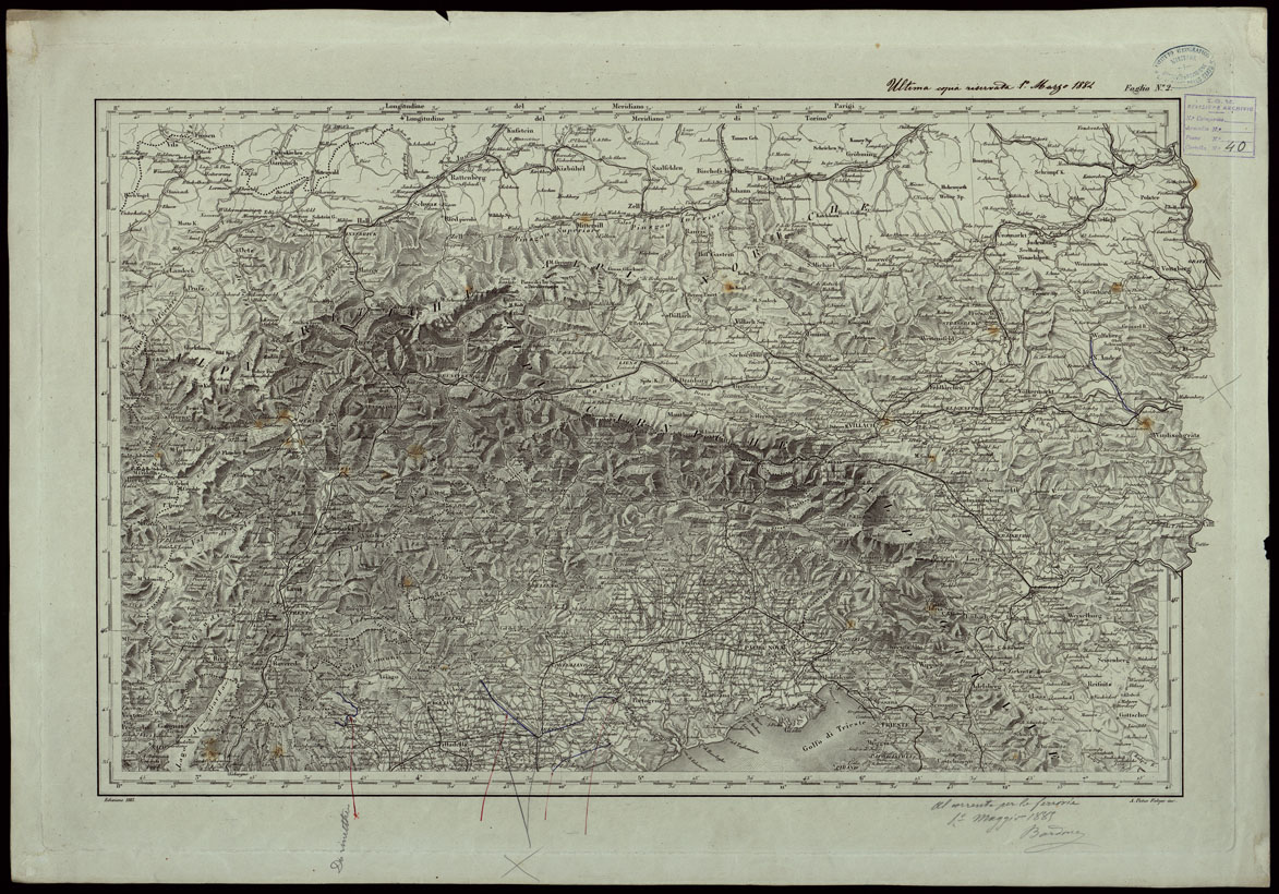 CARTA COROGRAFICA DELL'ITALIA SUPERIORE E CENTRALE ALLA SCALA DI 1 A 600.000 PUBBLICATA DALL'UFFICIO SUPERIORE DI STATO MAGGIORE - FOGLIO 2