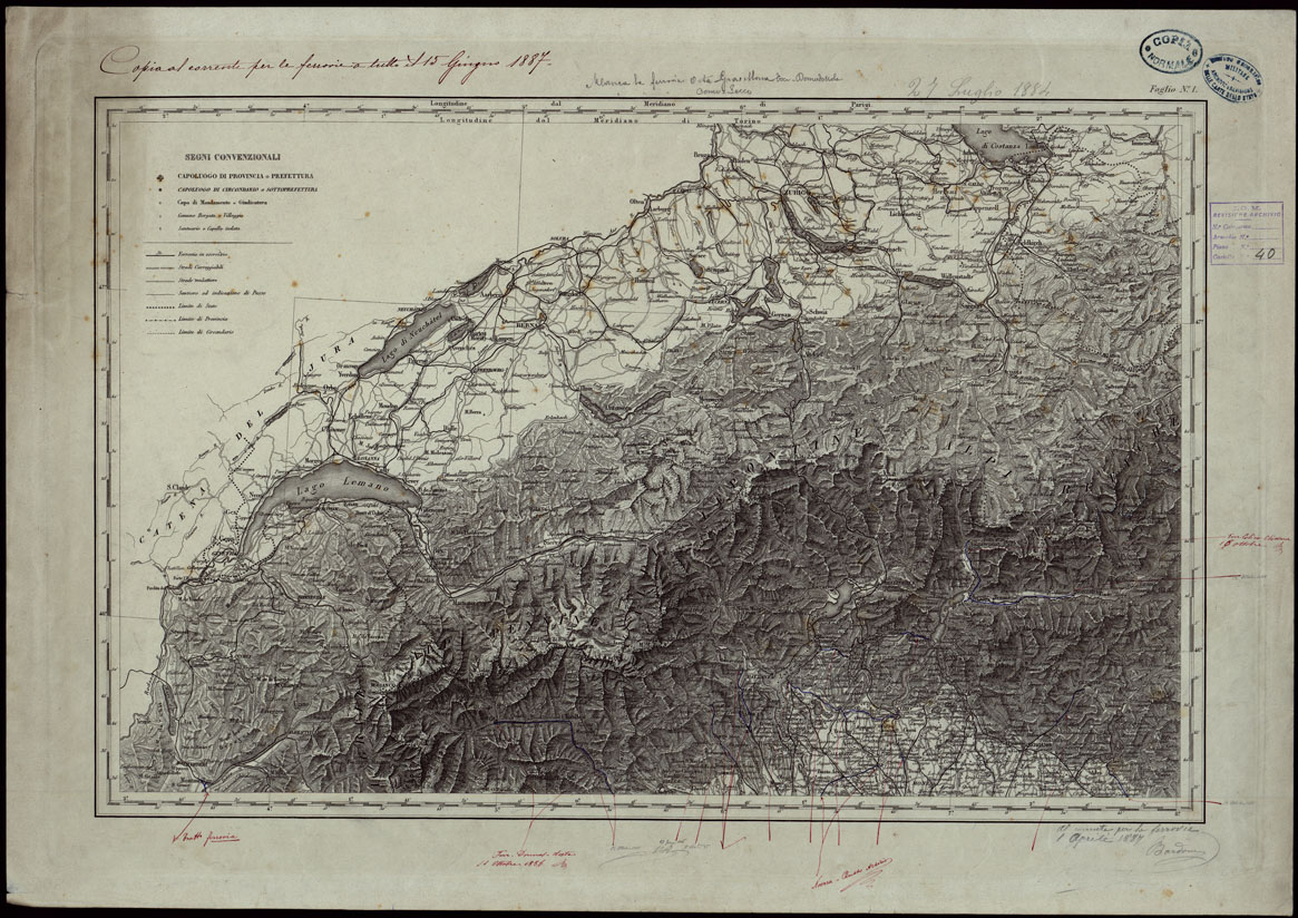 CARTA COROGRAFICA DELL'ITALIA SUPERIORE E CENTRALE ALLA SCALA DI 1 A 600.000 PUBBLICATA DALL'UFFICIO SUPERIORE DI STATO MAGGIORE - FOGLIO 1