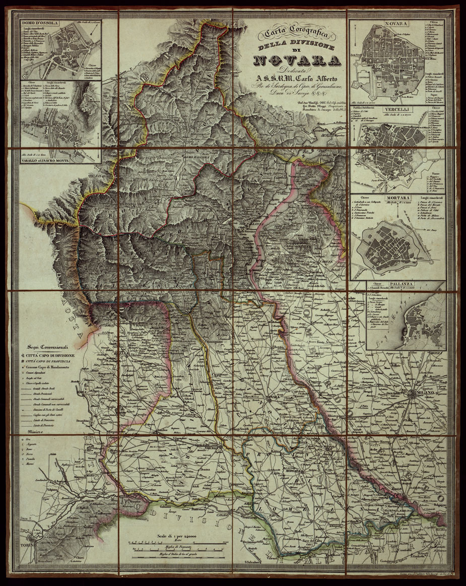 CARTA COROGRAFICA DELLA DIVISIONE DI NOVARA DEDICATA A. S.S.R.M. CARLO ALBERT, Re DI SARDEGNA, DI CIPRO, DI GERUSALEMME DUCA DI SAVOIA & && DAL SUO UMILISS. OBBL. FEDELISS. SUDDITO GIO BATTA MAGGI NEGOZIANTE E PROVEDITORE DI STAMPE DELLA M.S.
