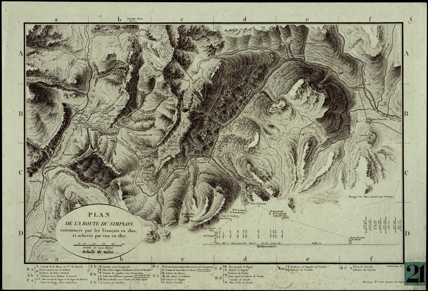 PLAN DE LA ROUTE DU SIMPLON COMMENCEE PAR LES FRANCAIS EN 1800 ET ACHEVEE PAR EUX EN 1807.