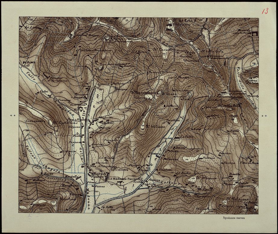 I rilevamenti topografici per la realizzazione della “Carta d´Italia&lrquo” iniziarono nel 1878: si trattava di un´opera così importante e lodevole che meritò la consapevole attenzione, non solo degli addetti ai lavori e delle categorie professionali coinvolte, ma anche delle più alte autorità del Regno.