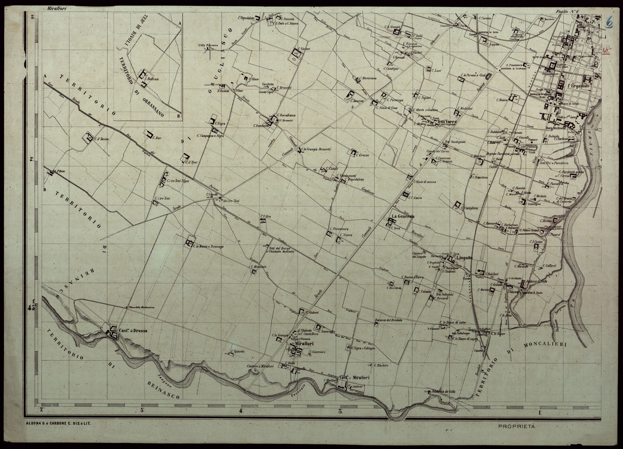 CARTA TOPOGRAFICA DEL TERRITORIO DEL COMUNE DI TORINO COMPILATA DA CIVICO UFFICIO D'ARTE ALLA SCALA DI 1:10.000 DIVISA IN SETTE FOGLI. EDITA NEL 1879 A SPESE DEL MUNICIPIO TORINO PRESSO L'EDITORE G.B. MAGGI PROVV.RE DI STAMPE DI S.M. - FOGLIO 6