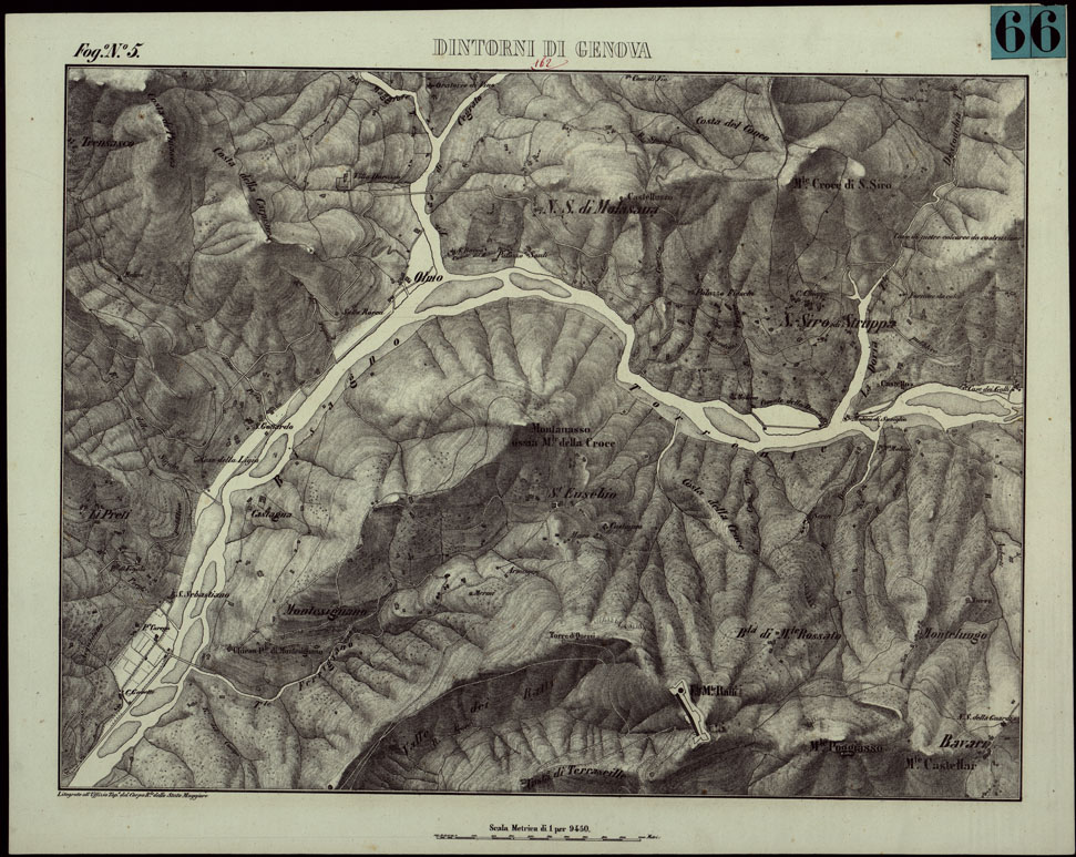 CARTA TOPOGRAFICA DEI DINTORNI DI GENOVA (PARTE NORD-EST) ALLA SCALA DI 1 al 9450 LITOGRAFIZZATA NEL 1851 - Fog. N.°5.