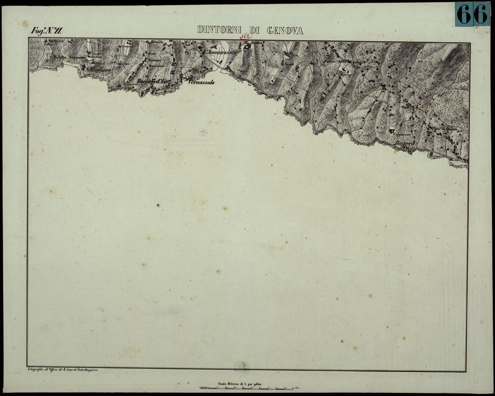 CARTA TOPOGRAFICA DEI DINTORNI DI GENOVA (PARTE NORD-EST) ALLA SCALA DI 1 al 9450 LITOGRAFIZZATA NEL 1851 - Fog. N.°11.