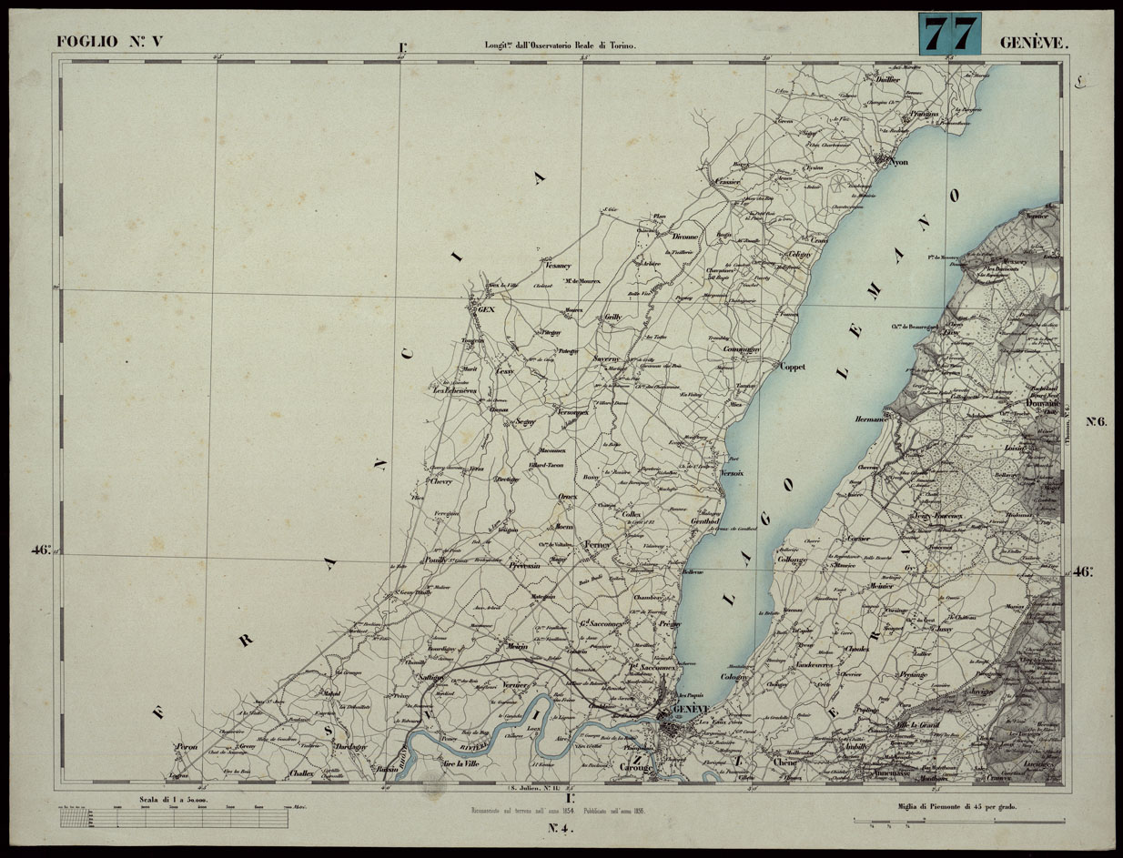 CARTA TOPOGRAFICA DEGLI STATI IN TERRAFERMA DI S.M. IL RE DI SARDEGNA ALLA SCALA DI 1A 50.000. OPERA DEL CORPO REALE DELLO STATO MAGGIORE - FOGLIO N.°V GENEVE