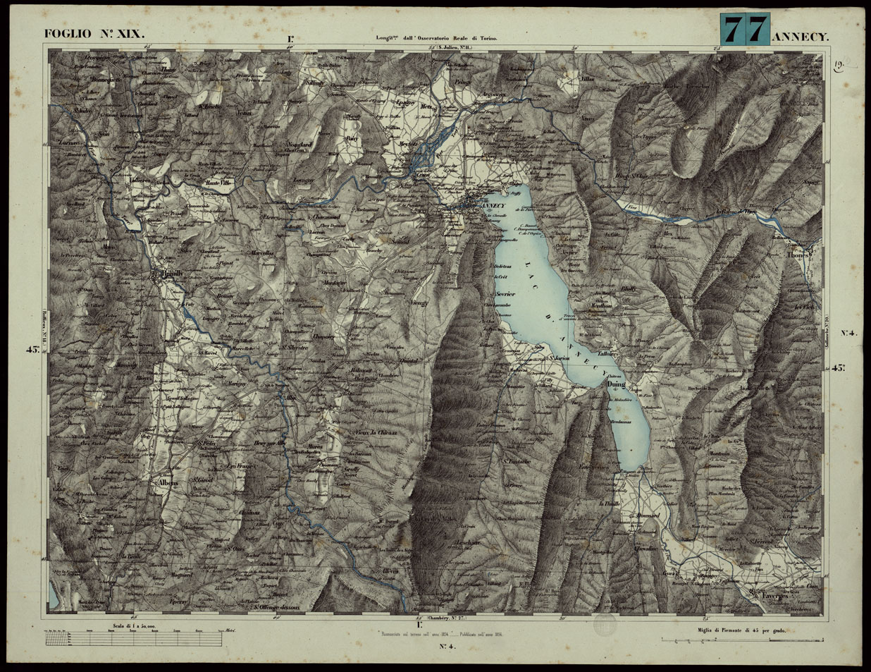 CARTA TOPOGRAFICA DEGLI STATI IN TERRAFERMA DI S.M. IL RE DI SARDEGNA ALLA SCALA DI 1A 50.000. OPERA DEL CORPO REALE DELLO STATO MAGGIORE - FOGLIO N.°XIX ANNECY