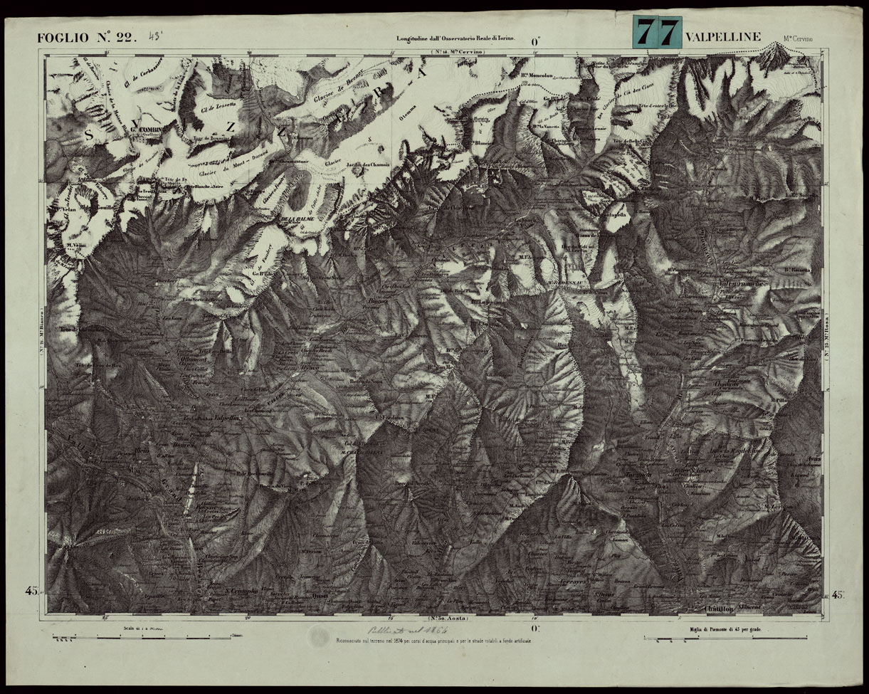 CARTA TOPOGRAFICA DEGLI STATI IN TERRAFERMA DI S.M. IL RE DI SARDEGNA ALLA SCALA DI 1A 50.000. OPERA DEL CORPO REALE DELLO STATO MAGGIORE - FOGLIO N.°22 VALPELLINE