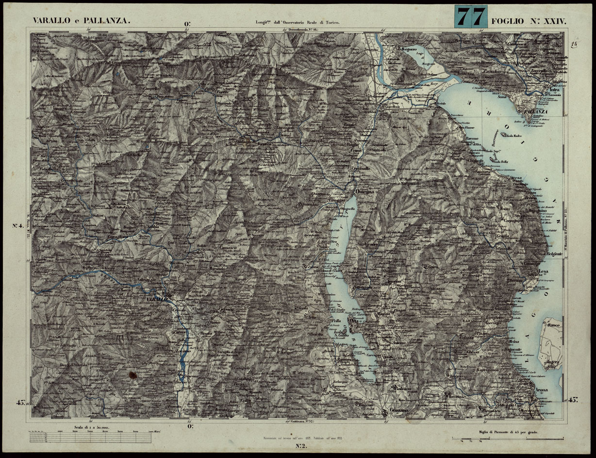 CARTA TOPOGRAFICA DEGLI STATI IN TERRAFERMA DI S.M. IL RE DI SARDEGNA ALLA SCALA DI 1A 50.000. OPERA DEL CORPO REALE DELLO STATO MAGGIORE - FOGLIO N.°XXIV VARALLO PALLANZA