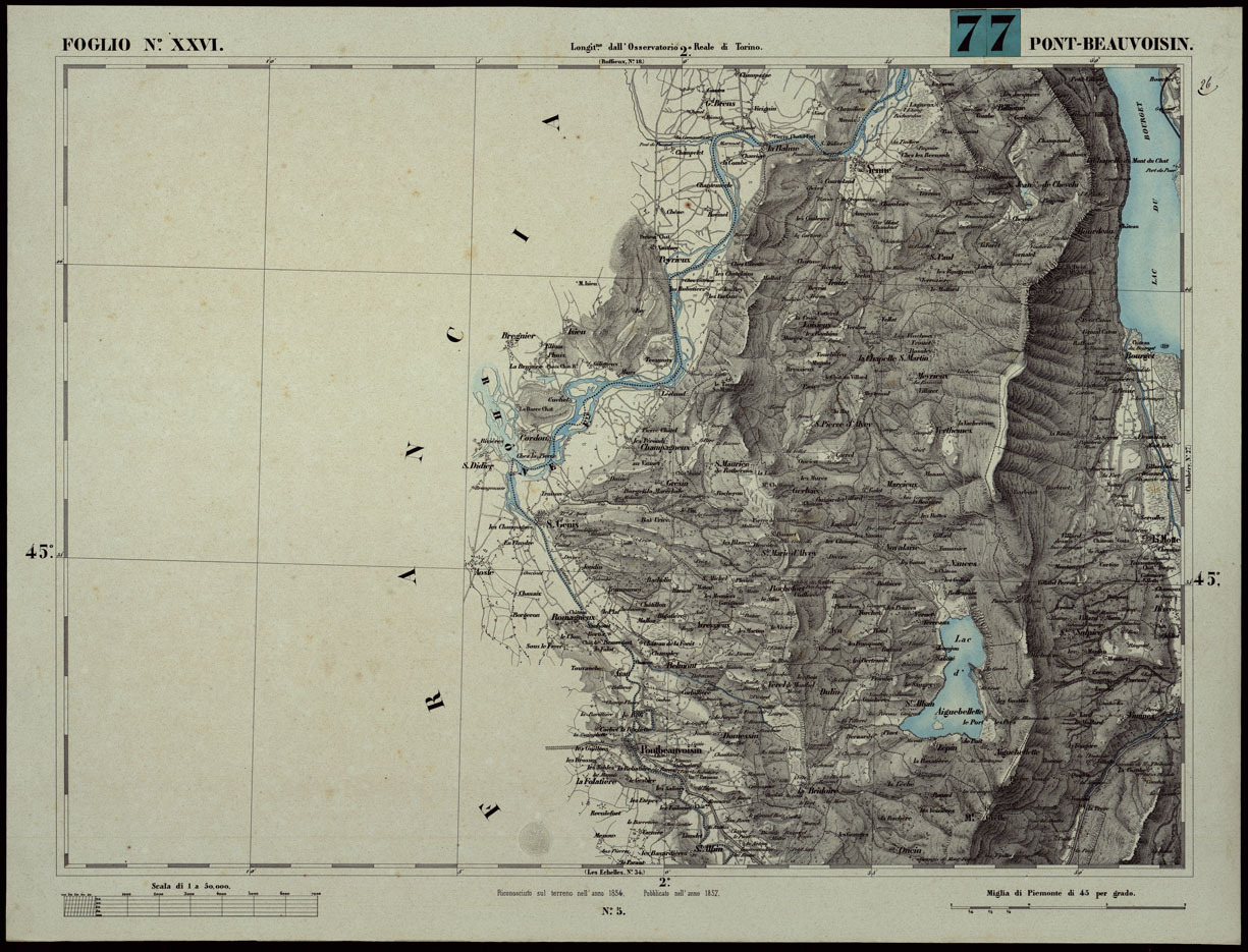 CARTA TOPOGRAFICA DEGLI STATI IN TERRAFERMA DI S.M. IL RE DI SARDEGNA ALLA SCALA DI 1A 50.000. OPERA DEL CORPO REALE DELLO STATO MAGGIORE - FOGLIO N.°XXVI PONT-BEAUVOISIN