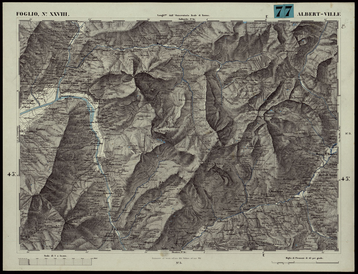 CARTA TOPOGRAFICA DEGLI STATI IN TERRAFERMA DI S.M. IL RE DI SARDEGNA ALLA SCALA DI 1A 50.000. OPERA DEL CORPO REALE DELLO STATO MAGGIORE - FOGLIO N.°XXVII ALBERT-VILLE