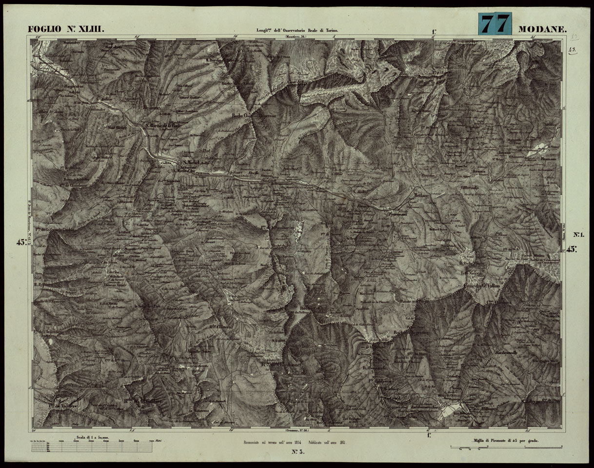 CARTA TOPOGRAFICA DEGLI STATI IN TERRAFERMA DI S.M. IL RE DI SARDEGNA ALLA SCALA DI 1A 50.000. OPERA DEL CORPO REALE DELLO STATO MAGGIORE - FOGLIO N.°XLIII MODANE