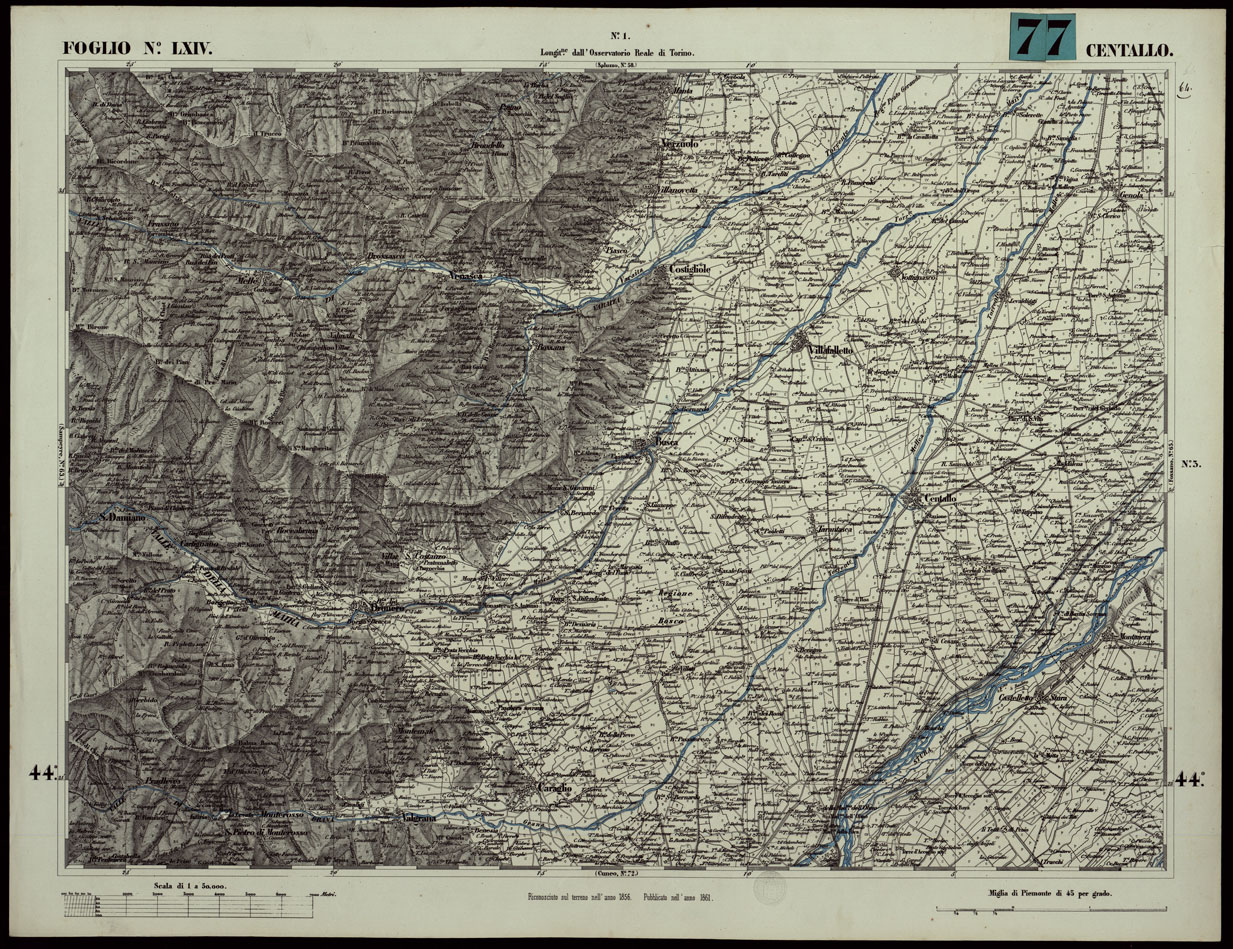 CARTA TOPOGRAFICA DEGLI STATI IN TERRAFERMA DI S.M. IL RE DI SARDEGNA ALLA SCALA DI 1A 50.000. OPERA DEL CORPO REALE DELLO STATO MAGGIORE - FOGLIO N.°LXIV CENTALLO