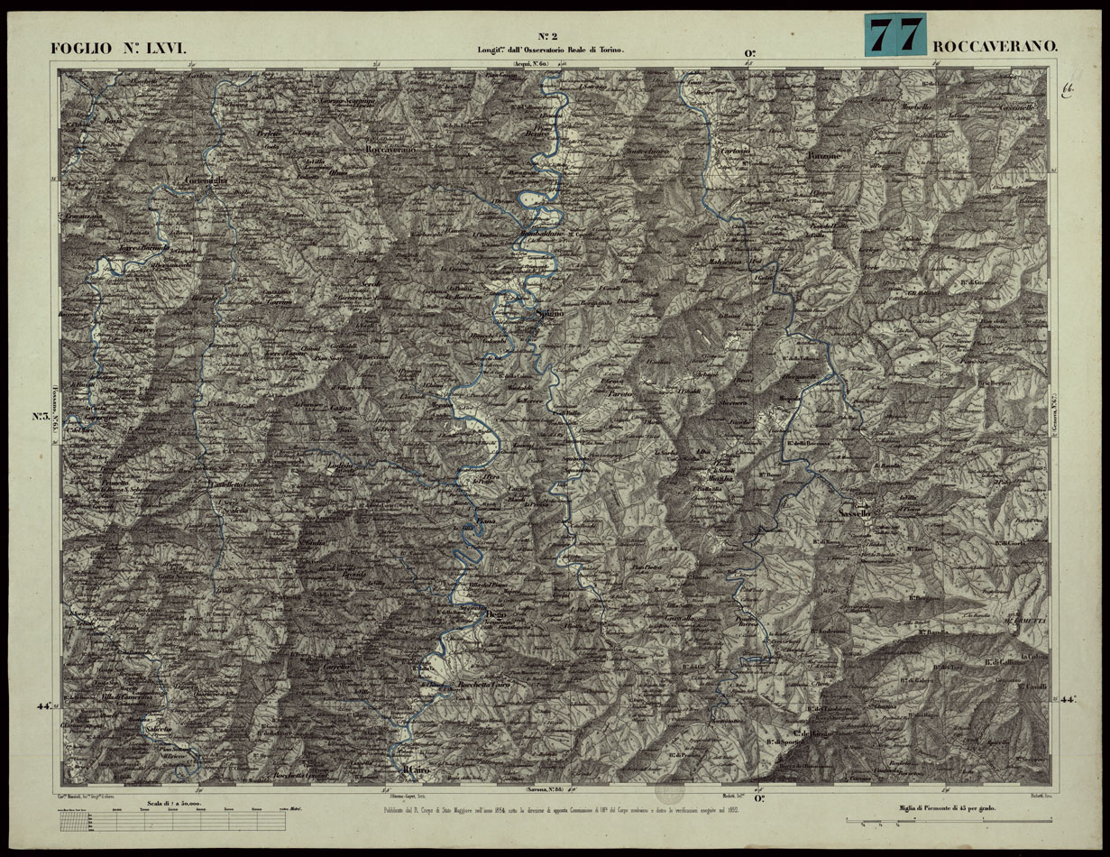 CARTA TOPOGRAFICA DEGLI STATI IN TERRAFERMA DI S.M. IL RE DI SARDEGNA ALLA SCALA DI 1A 50.000. OPERA DEL CORPO REALE DELLO STATO MAGGIORE - FOGLIO N.°LXVI ROCCAVERANO