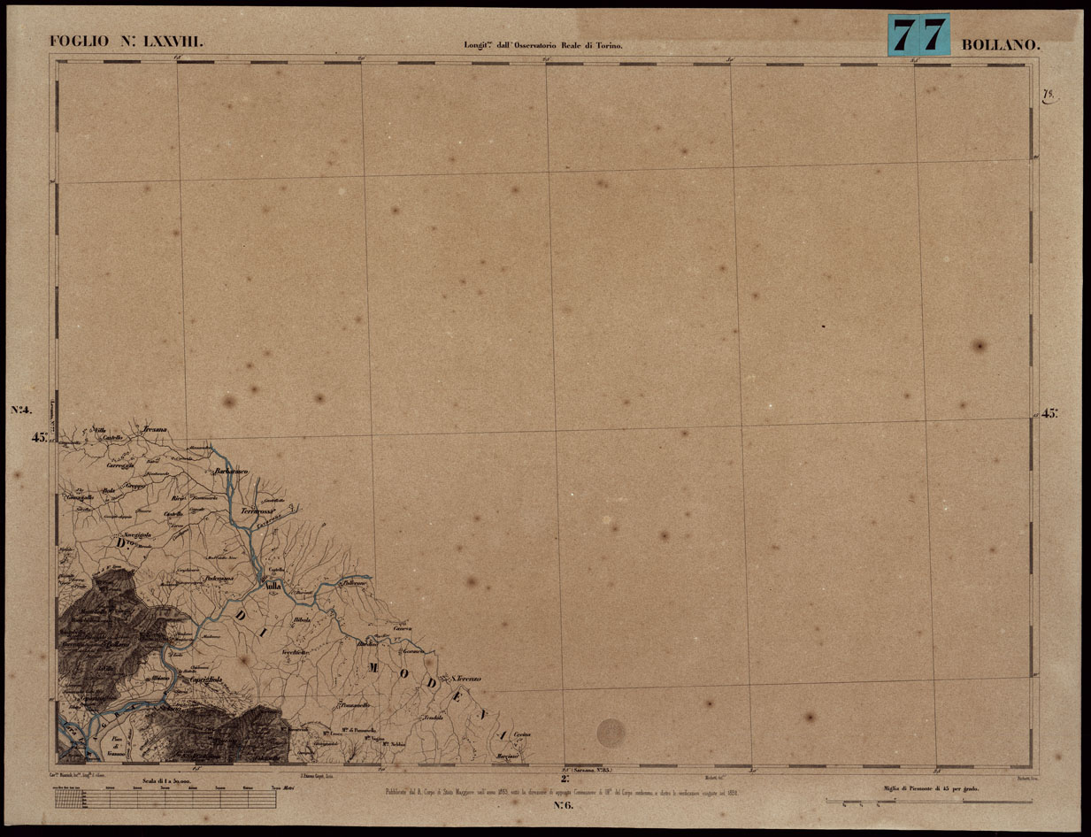 CARTA TOPOGRAFICA DEGLI STATI IN TERRAFERMA DI S.M. IL RE DI SARDEGNA ALLA SCALA DI 1A 50.000. OPERA DEL CORPO REALE DELLO STATO MAGGIORE - FOGLIO N.°LXXXVIII BOLLANO
