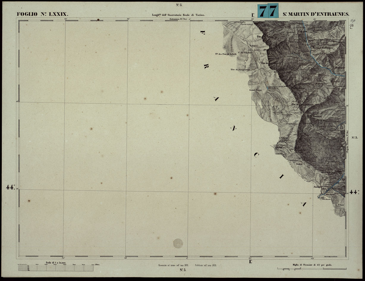CARTA TOPOGRAFICA DEGLI STATI IN TERRAFERMA DI S.M. IL RE DI SARDEGNA ALLA SCALA DI 1A 50.000. OPERA DEL CORPO REALE DELLO STATO MAGGIORE - FOGLIO N.°LXXIX SAN MARTIN D'ENTRAUNES