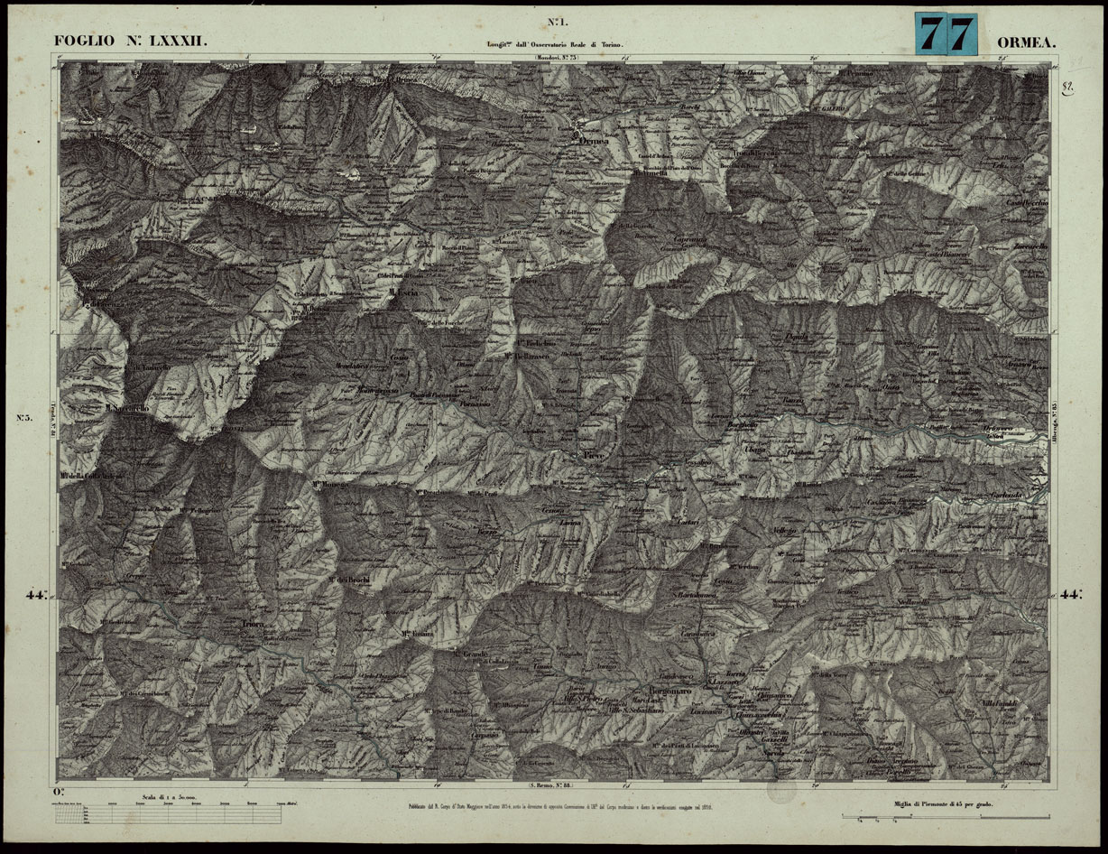 CARTA TOPOGRAFICA DEGLI STATI IN TERRAFERMA DI S.M. IL RE DI SARDEGNA ALLA SCALA DI 1A 50.000. OPERA DEL CORPO REALE DELLO STATO MAGGIORE - FOGLIO N.°LXXXI ORMEA