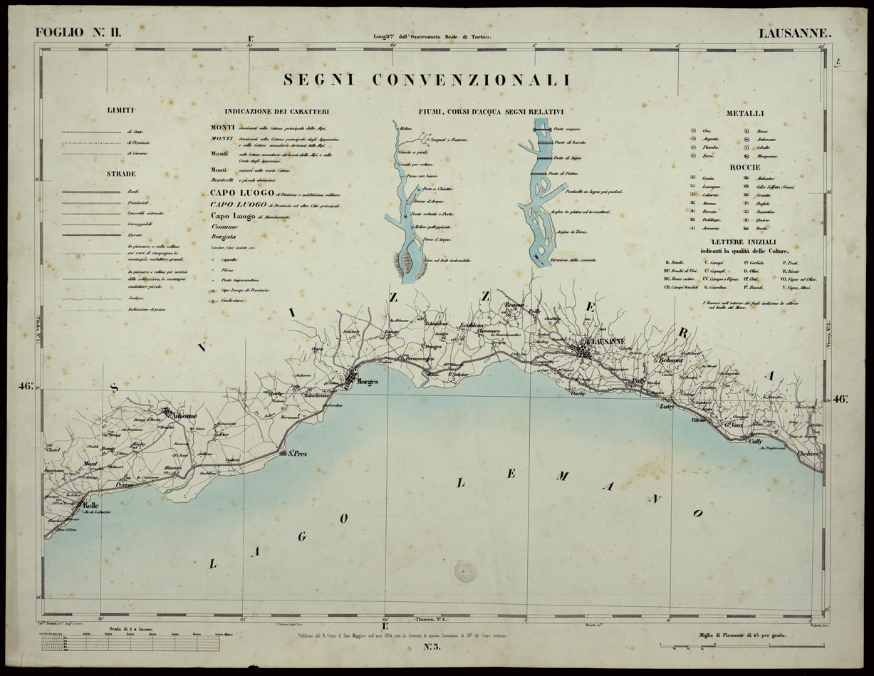 CARTA TOPOGRAFICA DEGLI STATI IN TERRAFERMA DI S.M. IL RE DI SARDEGNA ALLA SCALA DI 1A 50.000 OPERA DEL CORPO REALE DELLO STATO MAGGIORE RIVEDUTI E CORRETTI - SEGNI CONVENZIONALI