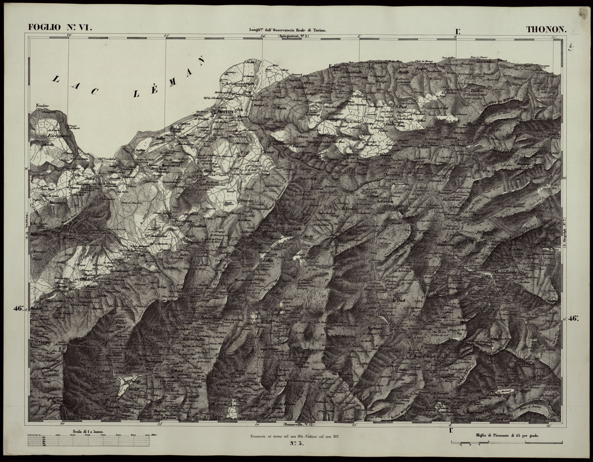 CARTA TOPOGRAFICA DEGLI STATI IN TERRAFERMA DI S.M. IL RE DI SARDEGNA ALLA SCALA DI 1A 50.000 OPERA DEL CORPO REALE DELLO STATO MAGGIORE RIVEDUTI E CORRETTI - FOGLIO N.°VI THONON