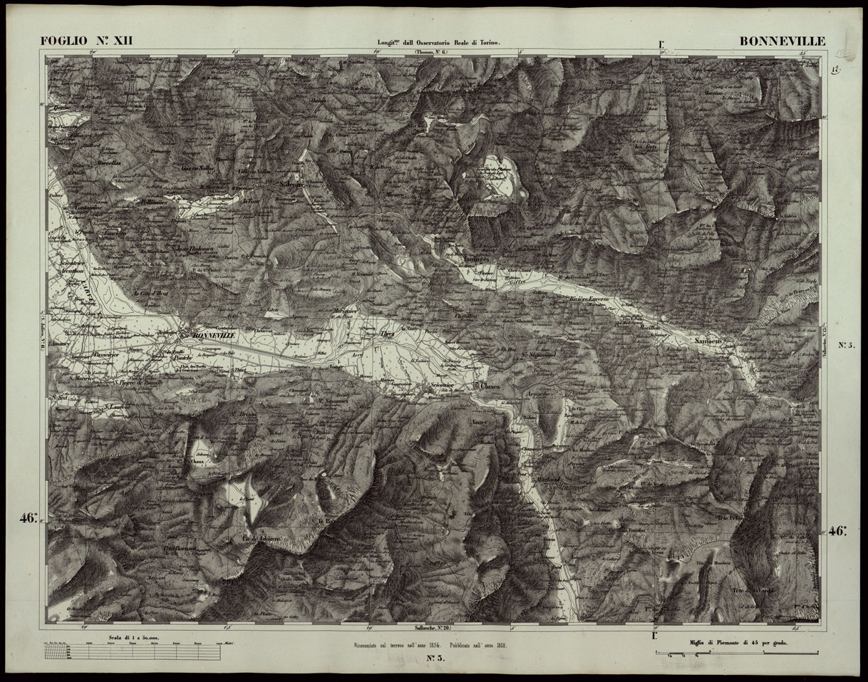 CARTA TOPOGRAFICA DEGLI STATI IN TERRAFERMA DI S.M. IL RE DI SARDEGNA ALLA SCALA DI 1A 50.000 OPERA DEL CORPO REALE DELLO STATO MAGGIORE RIVEDUTI E CORRETTI - FOGLIO N.° XII BONNEVILLE