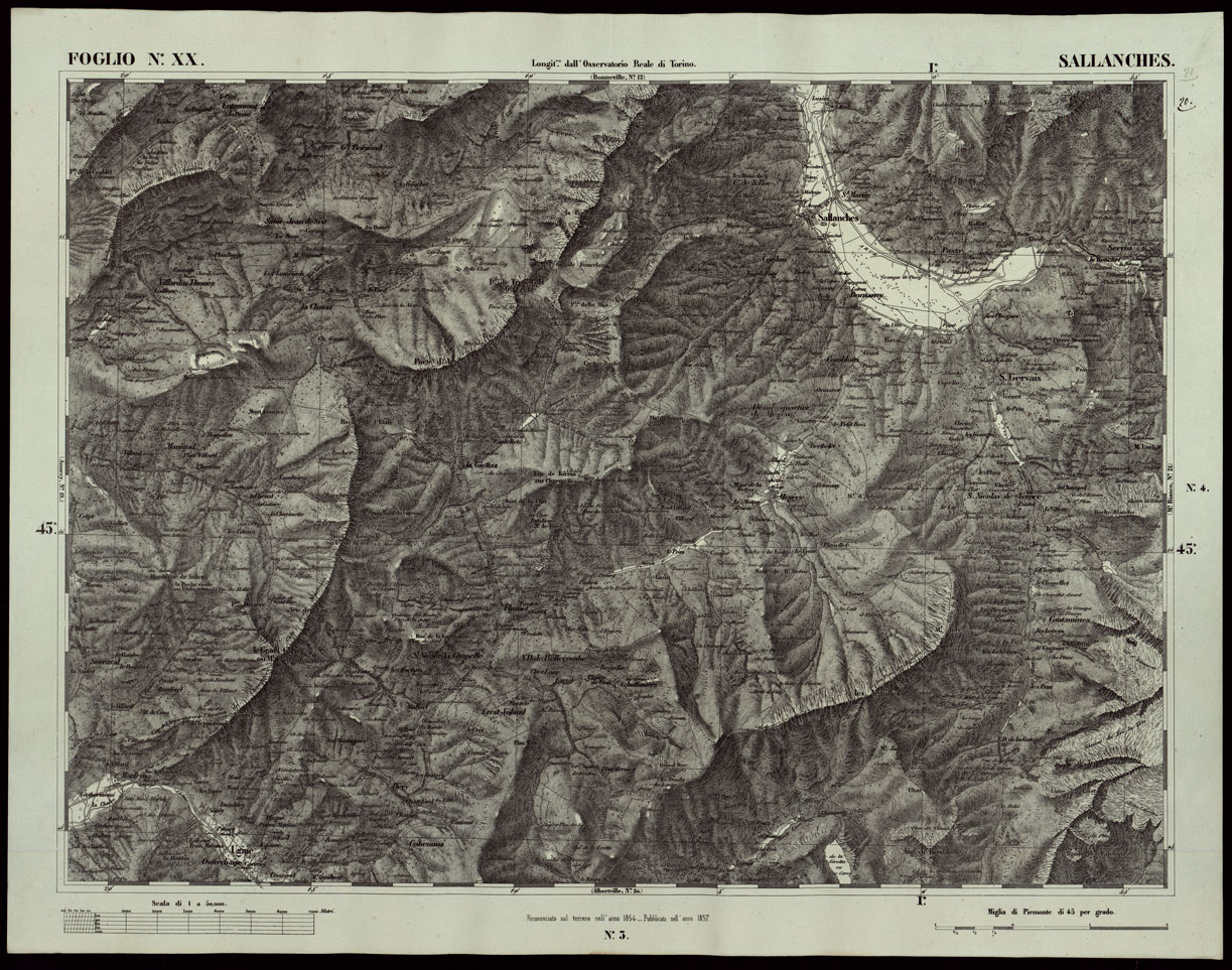 CARTA TOPOGRAFICA DEGLI STATI IN TERRAFERMA DI S.M. IL RE DI SARDEGNA ALLA SCALA DI 1A 50.000 OPERA DEL CORPO REALE DELLO STATO MAGGIORE RIVEDITI E CORRETTI - FOGLIO N.° XX SALLANCHES
