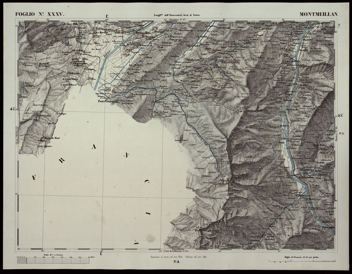 CARTA TOPOGRAFICA DEGLI STATI IN TERRAFERMA DI S.M. IL RE DI SARDEGNA ALLA SCALA DI 1A 50.000 OPERA DEL CORPO REALE DELLO STATO MAGGIORE RIVEDUTI E CORRETTI - FOGLIO N.° XXXV MONTMEILLAN
