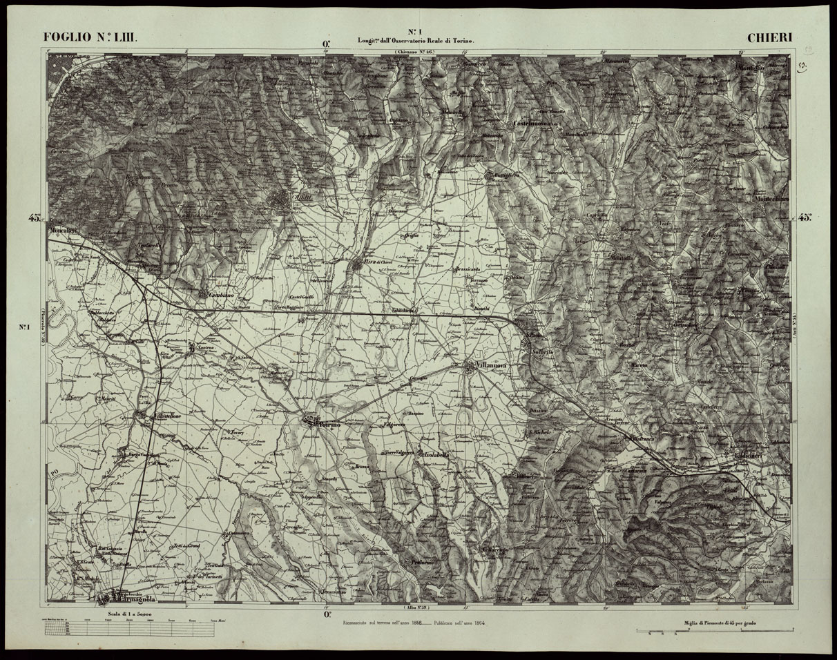 CARTA TOPOGRAFICA DEGLI STATI IN TERRAFERMA DI S.M. IL RE DI SARDEGNA ALLA SCALA DI 1A 50.000 OPERA DEL CORPO REALE DELLO STATO MAGGIORE RIVEDUTI E CORRETTI - FOGLIO N.° LIII CHIERI
