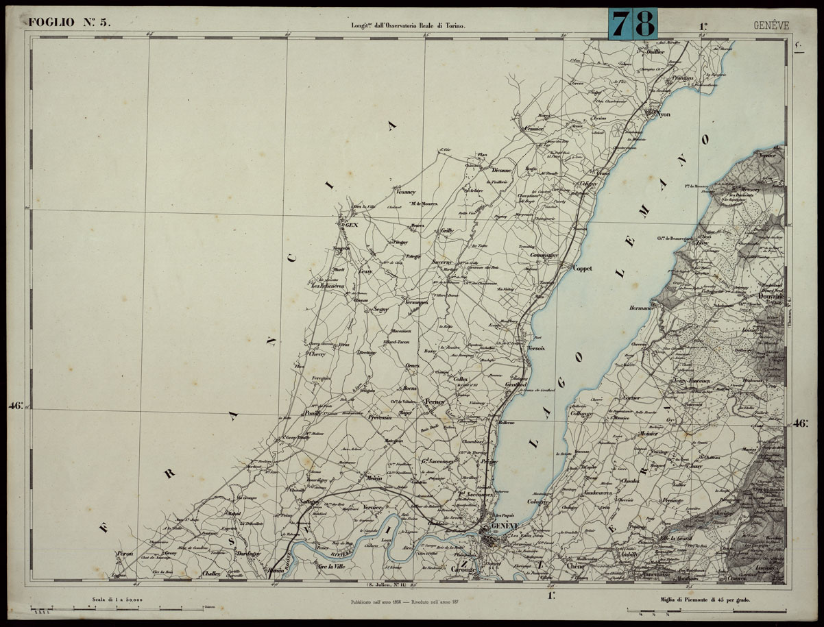 CARTA TOPOGRAFICA DEGLI STATI IN TERRAFERMA DI S.M. IL RE DI SARDEGNA ALLA SCALA DI 1.A 50.000. OPERA DEL CORPO REALE DELLO STATO MAGGIORE - FOGLIO N.°5. GENEVE
