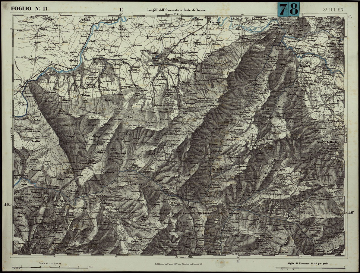 CARTA TOPOGRAFICA DEGLI STATI IN TERRAFERMA DI S.M. IL RE DI SARDEGNA ALLA SCALA DI 1.A 50.000. OPERA DEL CORPO REALE DELLO STATO MAGGIORE - FOGLIO N.°11. SANT JULIEN