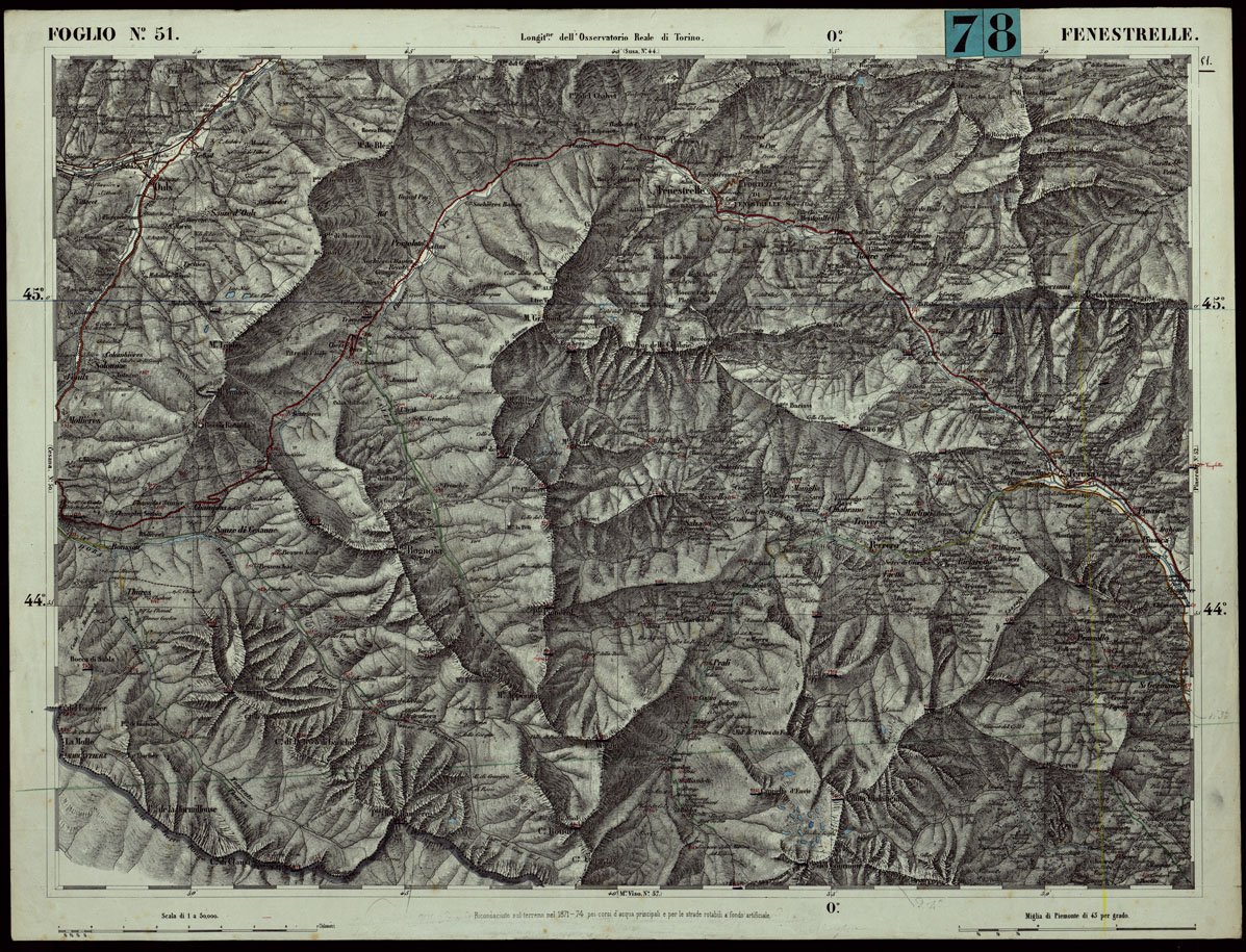 CARTA TOPOGRAFICA DEGLI STATI IN TERRAFERMA DI S.M. IL RE DI SARDEGNA ALLA SCALA DI 1.A 50.000. OPERA DEL CORPO REALE DELLO STATO MAGGIORE - FOGLIO N.°51. FENESTRELLE