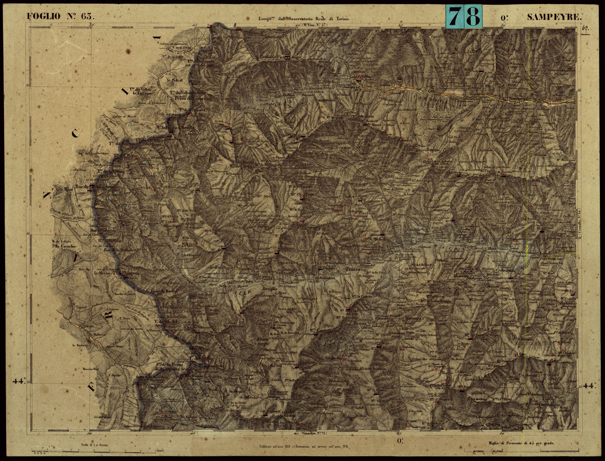 CARTA TOPOGRAFICA DEGLI STATI IN TERRAFERMA DI S.M. IL RE DI SARDEGNA ALLA SCALA DI 1.A 50.000. OPERA DEL CORPO REALE DELLO STATO MAGGIORE - FOGLIO N.°63. SAMPEYRE