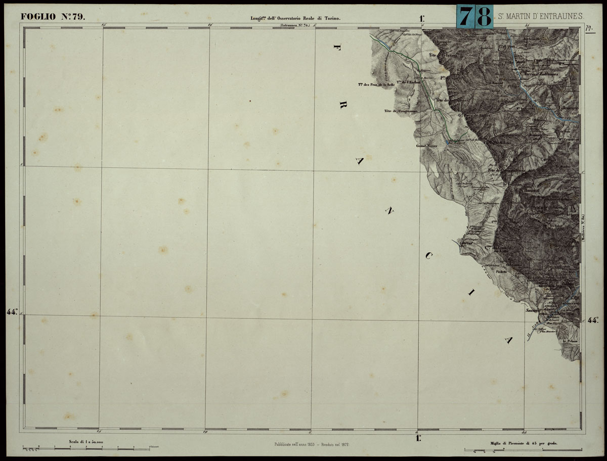 CARTA TOPOGRAFICA DEGLI STATI IN TERRAFERMA DI S.M. IL RE DI SARDEGNA ALLA SCALA DI 1.A 50.000. OPERA DEL CORPO REALE DELLO STATO MAGGIORE - FOGLIO N.°79. SAN MARTIN D'ENTRAUNES