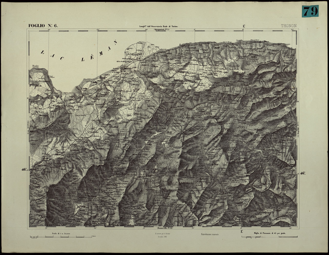 CARTA TOPOGRAFICA DEGLI STATI IN TERRAFERMA DI S.M. IL RE DI SARDEGNA ALLA SCALA DI 1.A 50.000. OPERA DEL CORPO REALE DELLO STATO MAGGIORE - FOGLIO N.°6. THONON