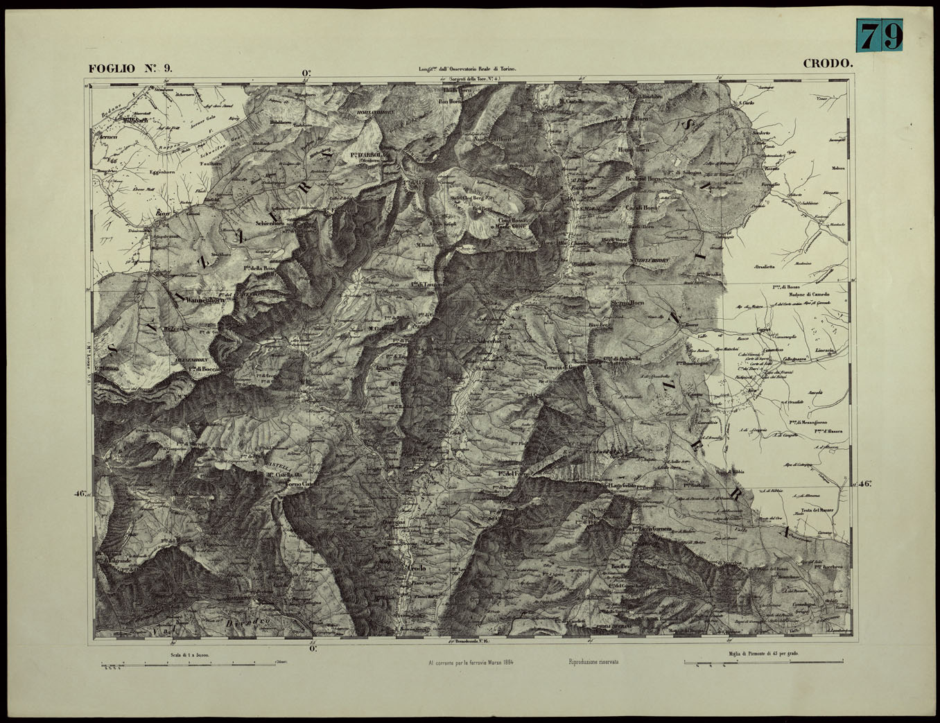 CARTA TOPOGRAFICA DEGLI STATI IN TERRAFERMA DI S.M. IL RE DI SARDEGNA ALLA SCALA DI 1.A 50.000. OPERA DEL CORPO REALE DELLO STATO MAGGIORE - FOGLIO N.°9. CRODO
