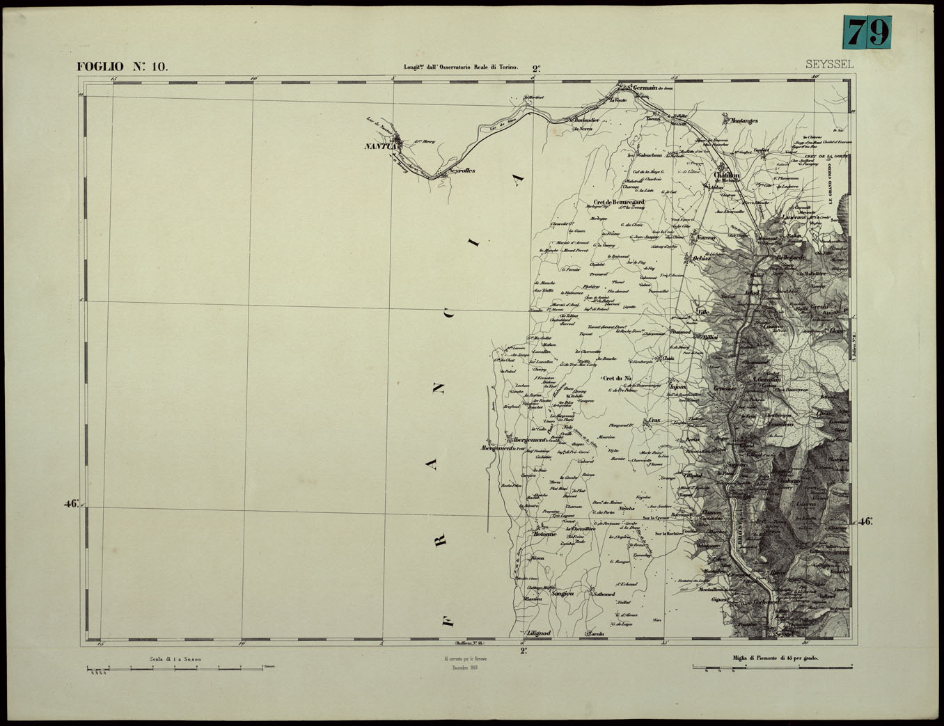 CARTA TOPOGRAFICA DEGLI STATI IN TERRAFERMA DI S.M. IL RE DI SARDEGNA ALLA SCALA DI 1.A 50.000. OPERA DEL CORPO REALE DELLO STATO MAGGIORE - FOGLIO N.°10. SEYSSEL
