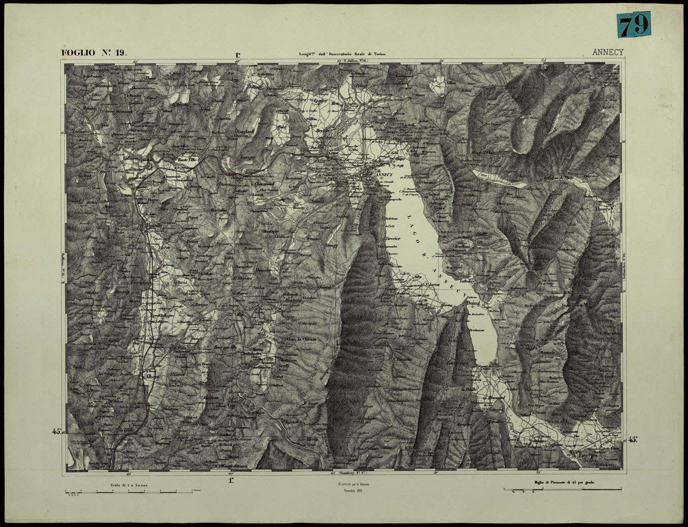CARTA TOPOGRAFICA DEGLI STATI IN TERRAFERMA DI S.M. IL RE DI SARDEGNA ALLA SCALA DI 1.A 50.000. OPERA DEL CORPO REALE DELLO STATO MAGGIORE - FOGLIO N.°19. ANNECY