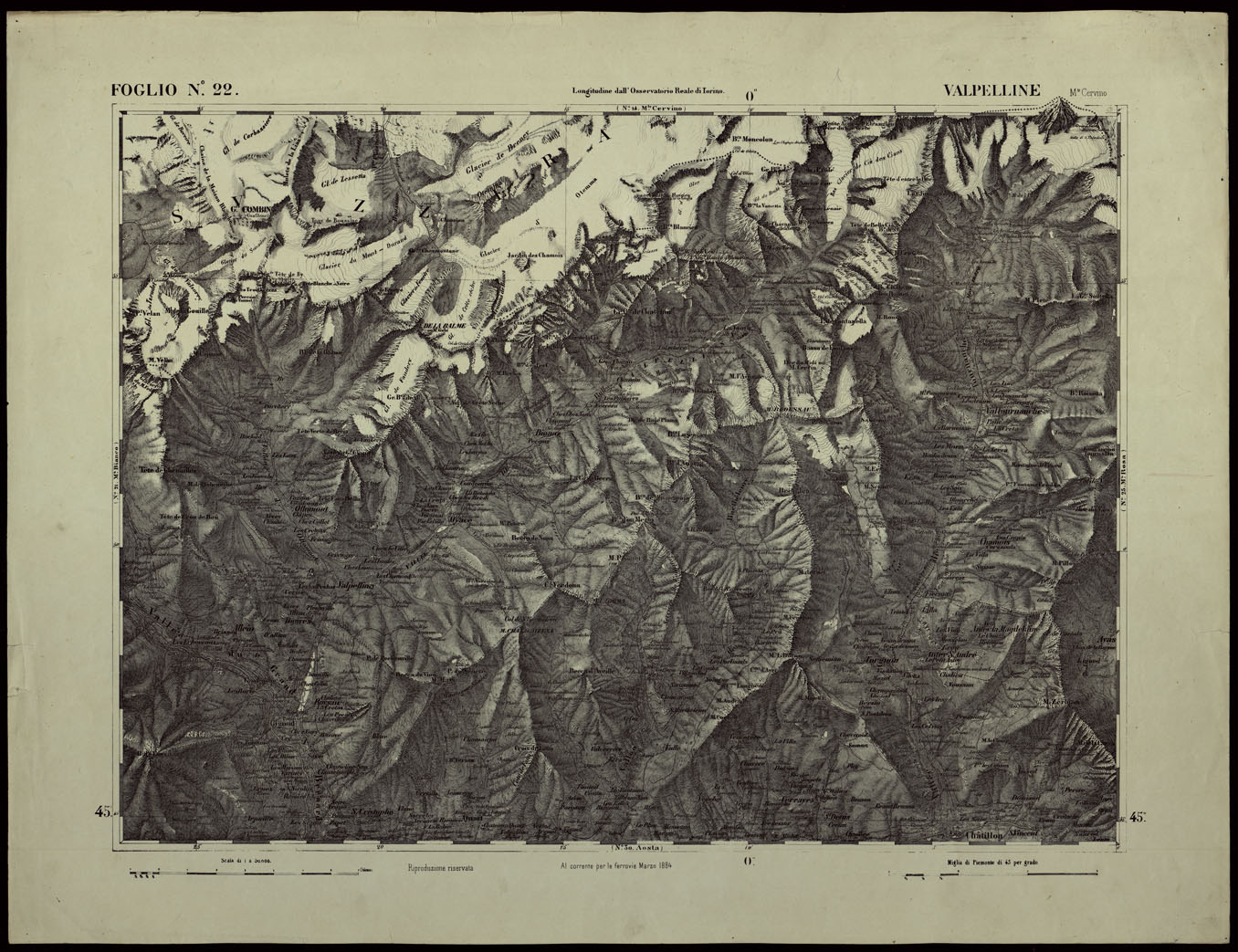 CARTA TOPOGRAFICA DEGLI STATI IN TERRAFERMA DI S.M. IL RE DI SARDEGNA ALLA SCALA DI 1.A 50.000. OPERA DEL CORPO REALE DELLO STATO MAGGIORE - FOGLIO N.°22. VALPELLINE