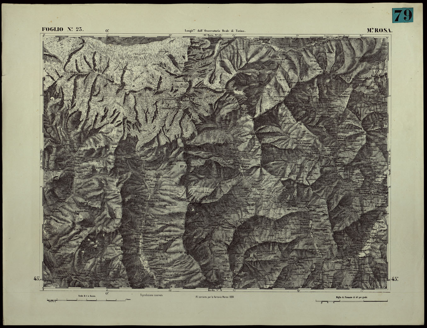 CARTA TOPOGRAFICA DEGLI STATI IN TERRAFERMA DI S.M. IL RE DI SARDEGNA ALLA SCALA DI 1.A 50.000. OPERA DEL CORPO REALE DELLO STATO MAGGIORE - FOGLIO N.°23. MONTE ROSA