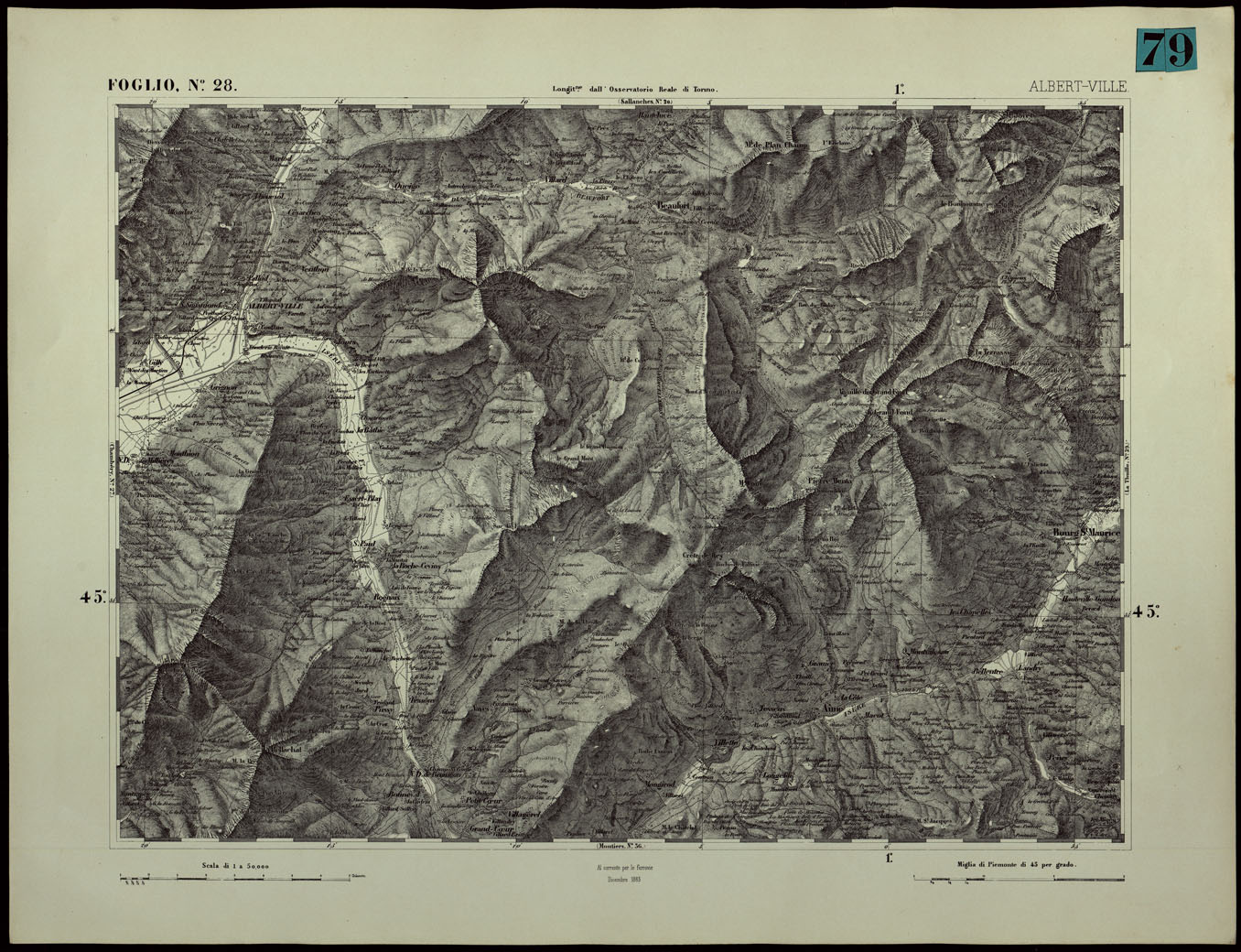 CARTA TOPOGRAFICA DEGLI STATI IN TERRAFERMA DI S.M. IL RE DI SARDEGNA ALLA SCALA DI 1.A 50.000. OPERA DEL CORPO REALE DELLO STATO MAGGIORE - FOGLIO N.°28. ALBERT-VILLE