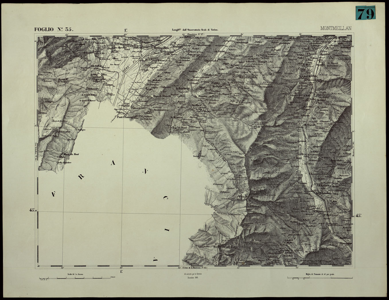CARTA TOPOGRAFICA DEGLI STATI IN TERRAFERMA DI S.M. IL RE DI SARDEGNA ALLA SCALA DI 1.A 50.000. OPERA DEL CORPO REALE DELLO STATO MAGGIORE - FOGLIO N.°35. MONTMEILLAN