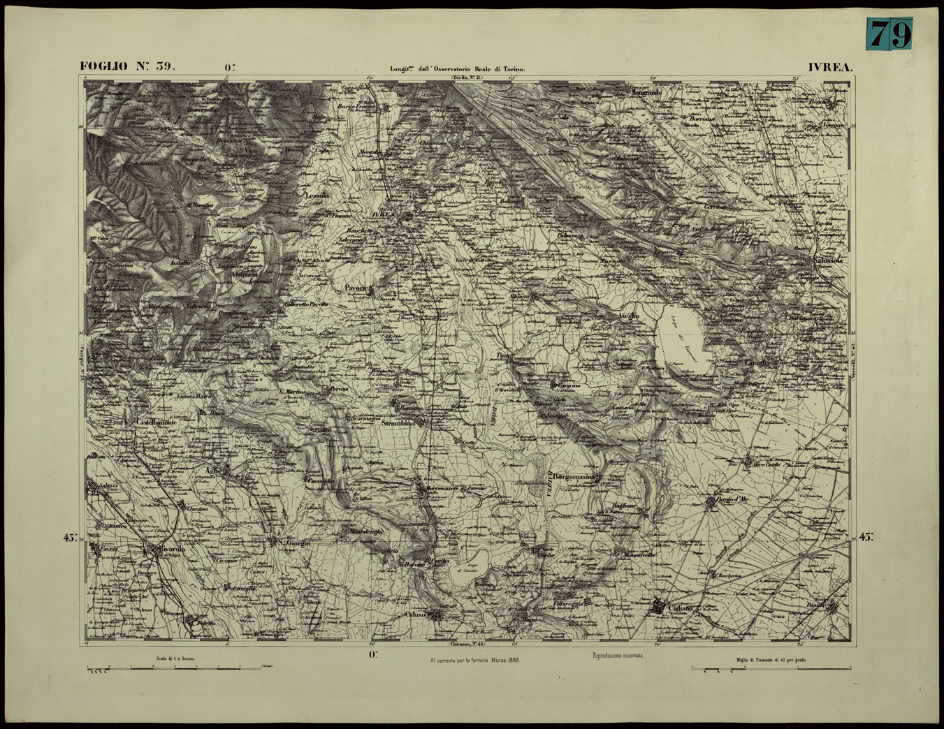 CARTA TOPOGRAFICA DEGLI STATI IN TERRAFERMA DI S.M. IL RE DI SARDEGNA ALLA SCALA DI 1.A 50.000. OPERA DEL CORPO REALE DELLO STATO MAGGIORE - FOGLIO N.°39. IVREA