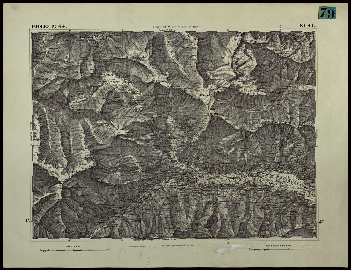 CARTA TOPOGRAFICA DEGLI STATI IN TERRAFERMA DI S.M. IL RE DI SARDEGNA ALLA SCALA DI 1.A 50.000. OPERA DEL CORPO REALE DELLO STATO MAGGIORE - FOGLIO N.°44. SUSA